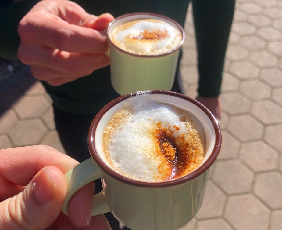 Ku káve som mala odjakživa kladný vzťah. Tajne som ju pila ešte počas základnej školy. Tento bod prechodu k cestnej cyklistike mi pripadal ako najmenej problémový. No aj toto má svoje úskalia. Hádzať do seba jedno espresso za druhým, alebo sedieť pri náprstku kávy dostatočne dlho, aby jazdec aspoň trochu zregeneroval? Môj vnútorný rozkol vyriešila mliečna pena na cappuccine. Stále mám problém zapamätať si, ktoré písmená v slove cappuccino sú zdvojené, a tak to občas popletiem a spravím z toho capuucinno alebo capuccinno, prípadne pivo. Ale už si zvykám.