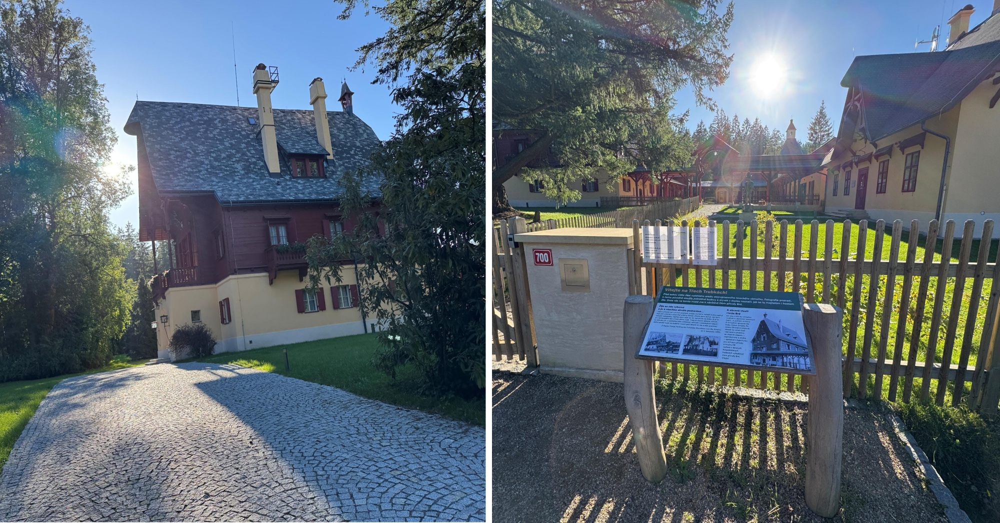 Trasa sa aj ďalej mierne klesá, čo trochu predpovedá fakt, že nás bude čakať aj stúpanie. Zatiaľ si ale užívame širokú a pohodlnú cestu, ktorá nás dovedie k ďalšiemu klenotu trasy. Lovecký kaštieľ Tri Rúrky. Ten si svojho času veľmi obľúbil aj prezident Tomáš Garrique Masaryk, ktorý tu často býval a objekt ešte v deväťdesiatych rokoch slúžil predstaviteľom armády a vlády. Teraz je po rekonštrukcii a novo sa tu otvoril Dom prírody Brd, ktorý predstavuje stálu vnútornú expozíciu, ktorá vznikla v spolupráci s Agentúrou ochrany prírody a krajiny a Múzeom Stredných Brd. Expozícia je zameraná na unikátnu prírodu i najzaujímavejšie turistické ciele a je možné ho v otváracej dobe navštíviť.