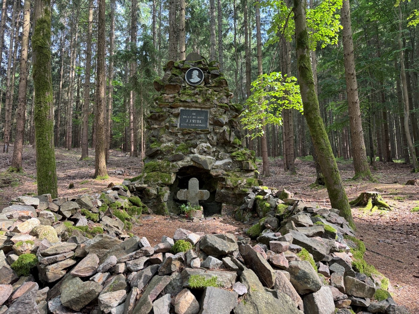 Jazdu začíname v Rožmitále pod Třemšínom a mierime smerom na juh, von z mesta. Cesta začína stúpať, míňame značku koniec mesta av diaľke už vidíme husto zalesnený horský hrebeň. Mierne stúpanie, zatiaľ asfaltové nás privádzajú k objektu bývalých kasární, ktoré v roku 2003 opustili poslední vojaci. Pozdĺž obvodového plotu cesta stále mierne stúpa, ale ide sa príjemne a otvorený priestor zvádza na pozorovanie údolia mesta, za ktorým sa na protiľahlých severozápadných svahoch derú do výšky vrcholy Praha a Malý Tok. Onedlho nás obklopia ihličnany a po spevnenej ceste pokračujeme až do Voltuša. Po odbočke doľava sme už na plnohodnotnej lesnej ceste a začíname pociťovať trochu strmší výjazd. Inu, sme v horách :-) Prvá zastávka sa však už blíži. Obklopuje nás hustý les, šliapeme do vrchu s vyššou kadenciou, ideme po mäkkom ihličí. Našu techniku občas preverí nejaký koreň, ale to nás neodradí. Sme tu - Mohyla Jakuba Jána Rybu. Hudobný skladateľ (autor diela „Hej mistře…“), pedagóg a jedna z najvýznamnejších miestnych osobností, práve tu ukončil svoje životné putovanie. My našťastie nekončíme a pokračujeme ďalej.