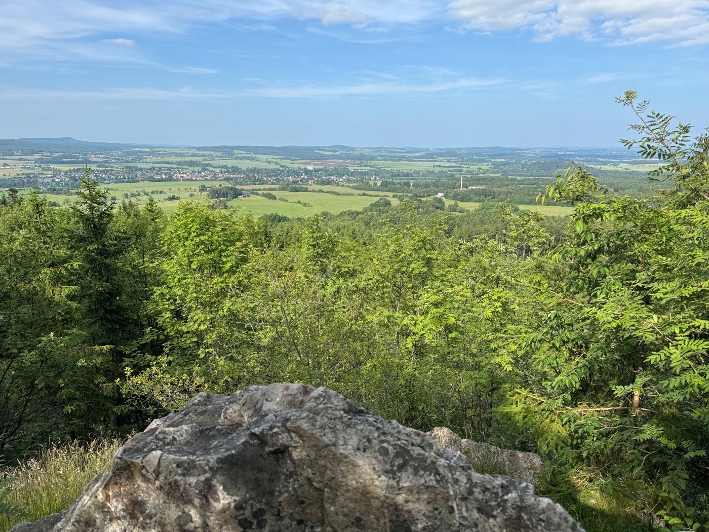 Vystúpime ešte zhruba 40 výškových metrov a dostávame sa na vyhliadku „Nad Voltuší“. Odtiaľ máme celý Rožmitál pod Třemšínom ako na dlani. Vidieť je aj 20 km vzdialená Příbram. My sa ale nezdržiavame a „upaľujeme“ ďalej, čaká nás toho ešte veľa.