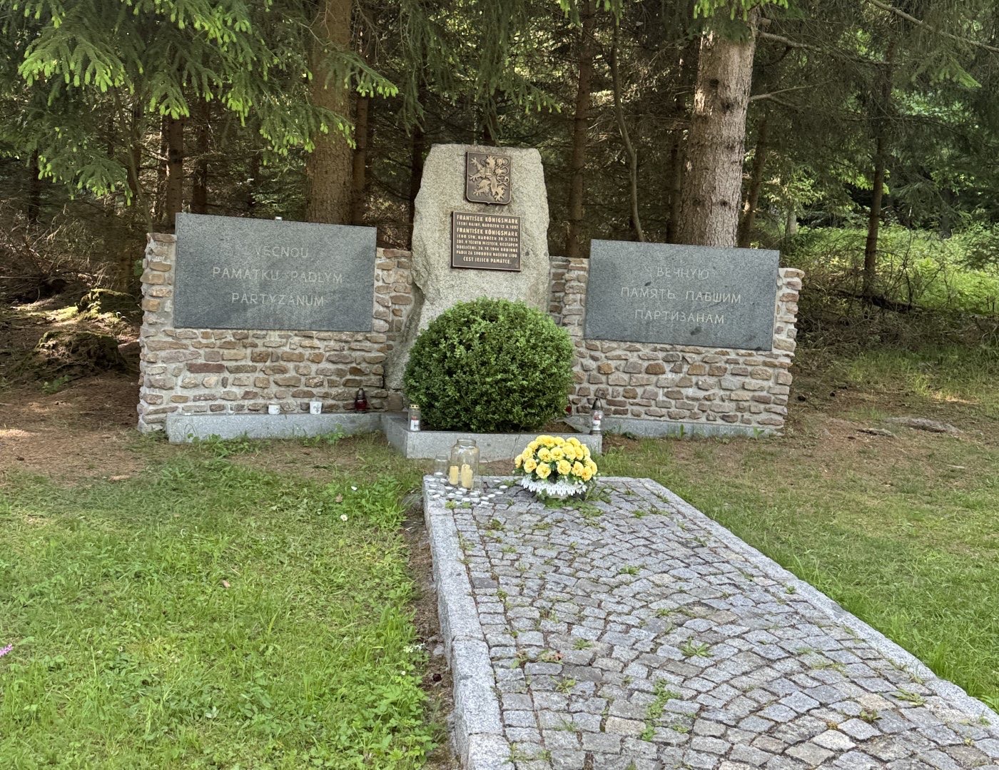 Pokojnou klesajúcou šotolinou pokračujeme ďalej až na asfaltku. Odbočujeme doprava a objavíme sa na križovatke „Na Dedku“. Prejdeme hlavnú cestu, po ktorej v máji 1945 americké vojsko postupovalo na Prahu a prišlo až do Rožmitálu. Avšak s ohľadom na dohodu s Červenou armádou a demarkačnú líniu, sa Američania museli stiahnuť späť do Lnár. Boje 2. svetovej vojny tu aspoň pripomína pomník padlým partizánom.