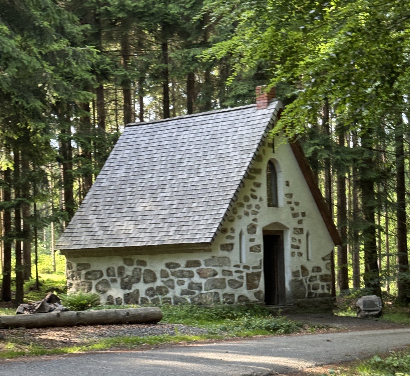 Po ľavici uvidíme novopostavenú základňu rožmitálskych skautov. Tá pôvodná pred pár rokmi zhorela a zásluho skautov, dobrovoľníkov a darcov sa podarilo dokončiť nové stavanie.