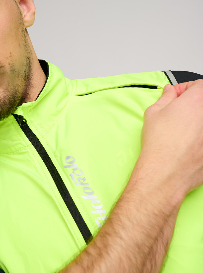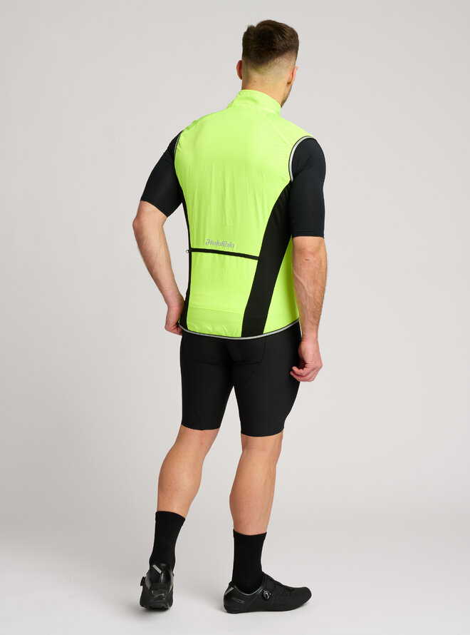 Lekka, wiatroszczelna i częściowo wodoodporna kamizelka wykonana z ultralekkiej tkaniny poliestrowej. Oprócz dwóch bocznych paneli wykonanych z siateczki, przewiewność zapewniają dwa mniejsze panele z siateczki zapinane na zamek na ramionach. W zestawie znajduje się mała torebka, w którą bez problemu zapakujesz kamizelkę i zabierzesz ją ze sobą wszędzie.