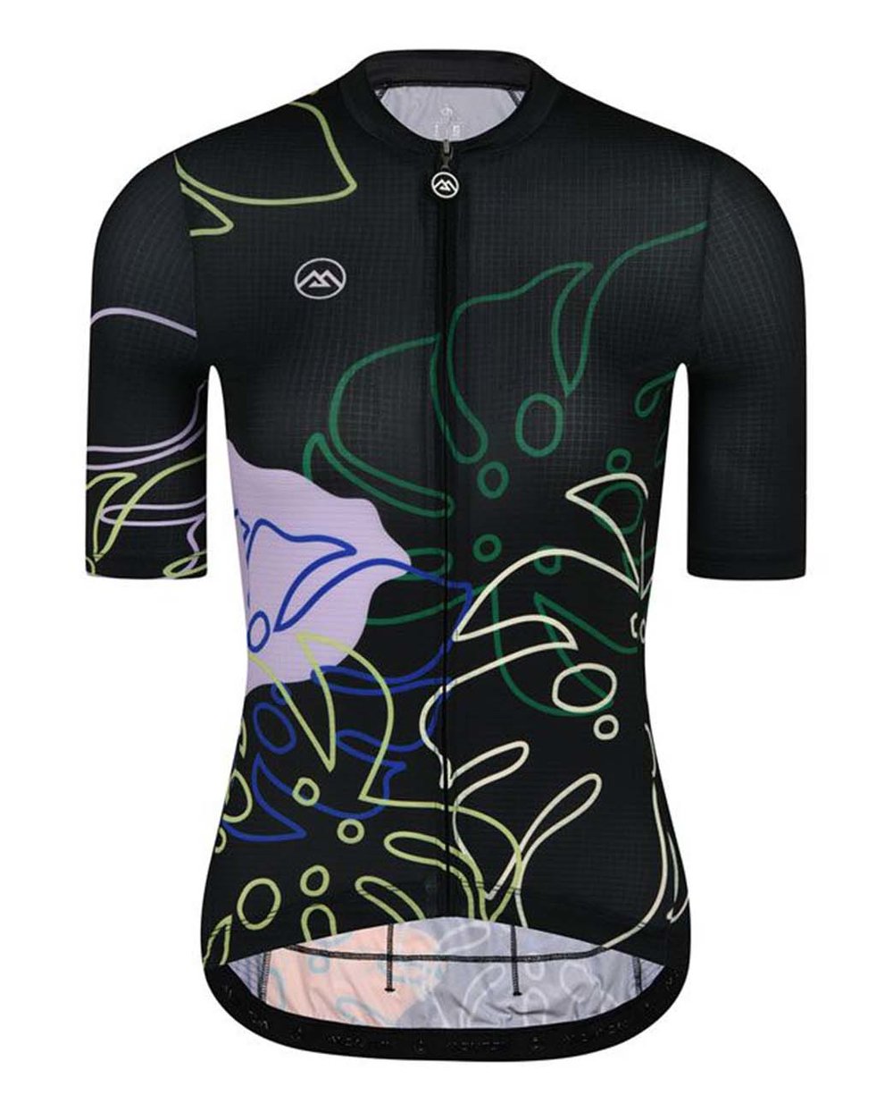 Koszulka kolarska z krótkim rękawem - JUNGLELEAF LADY - czarny/kolorowy