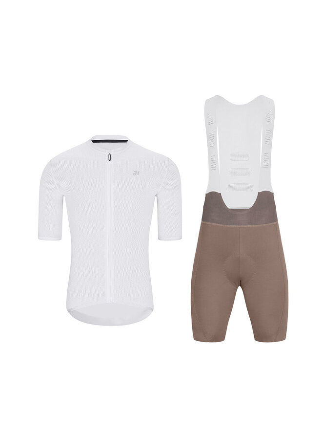 Krótka koszulka kolarska i spodenki - AEROLITE - brązowy/biały