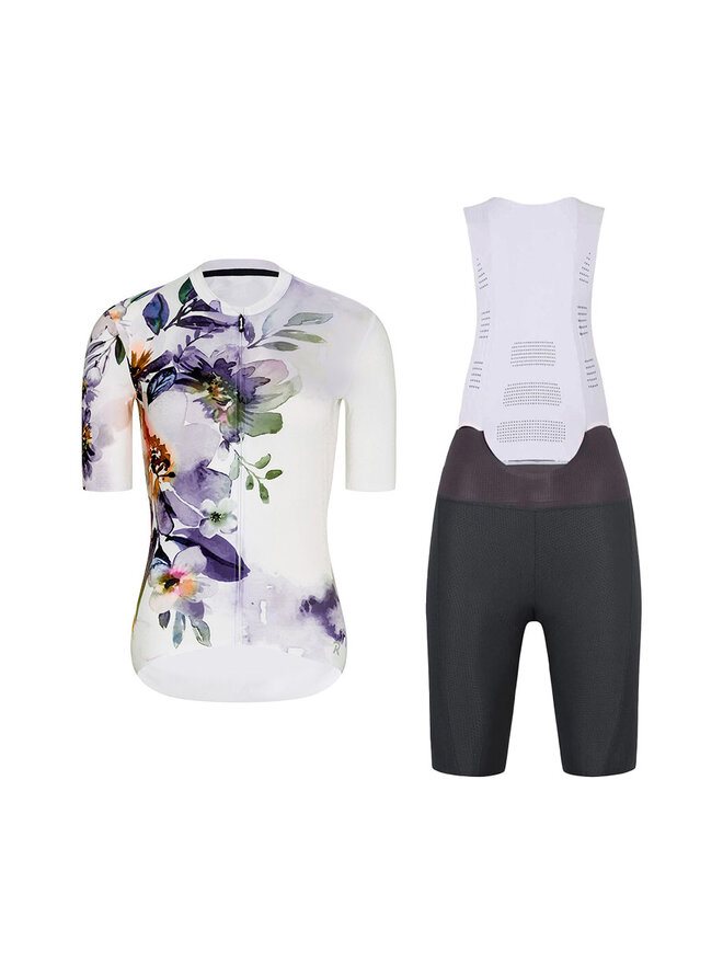 Krótka koszulka kolarska i spodenki - FLOWERY LADY - antracyt/biały/kolorowy