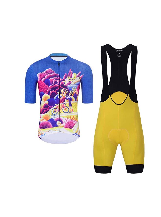 Krótka koszulka kolarska i spodenki - VOYAGE - żółty/niebieski/kolorowy
