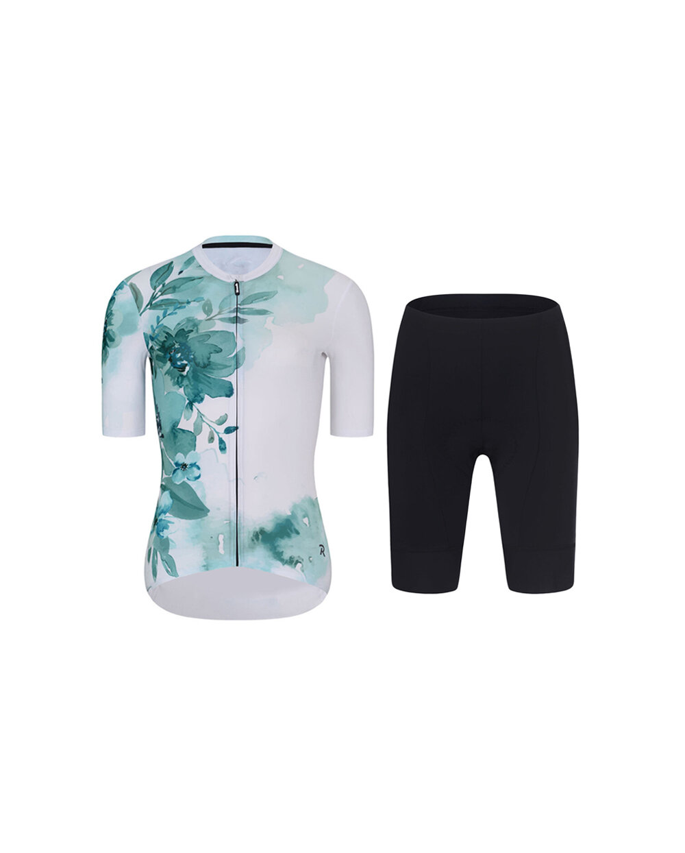 Krótka koszulka kolarska i spodenki - FLOWERY LADY - zielony/czarny