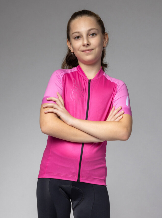 Koszulka kolarska z krótkim rękawem - FOLLOW ME KID - różowy