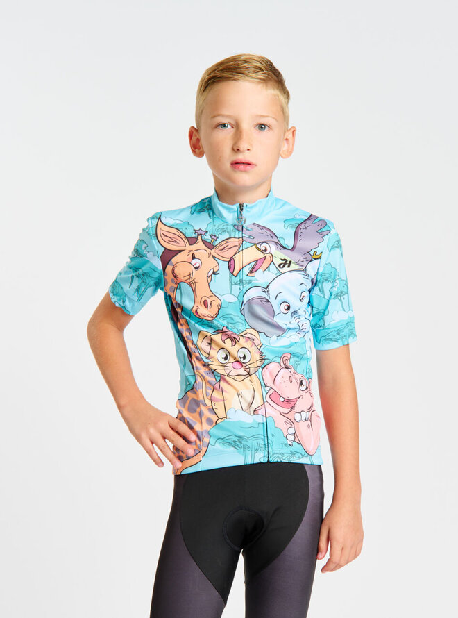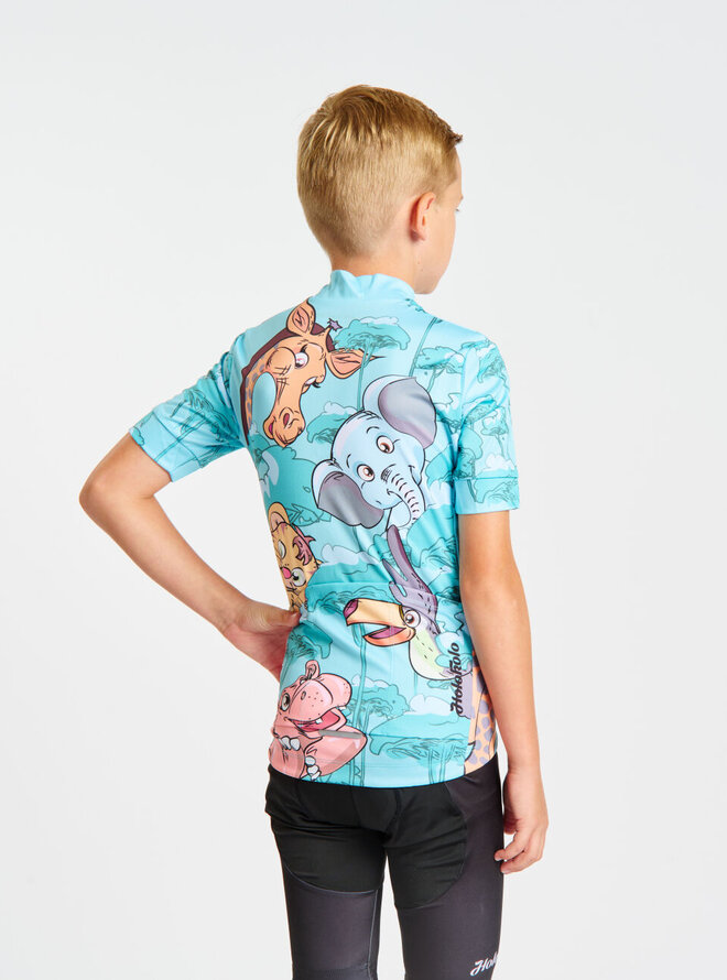 Koszulka kolarska z krótkim rękawem - SAFARI - turkusowy/kolorowy