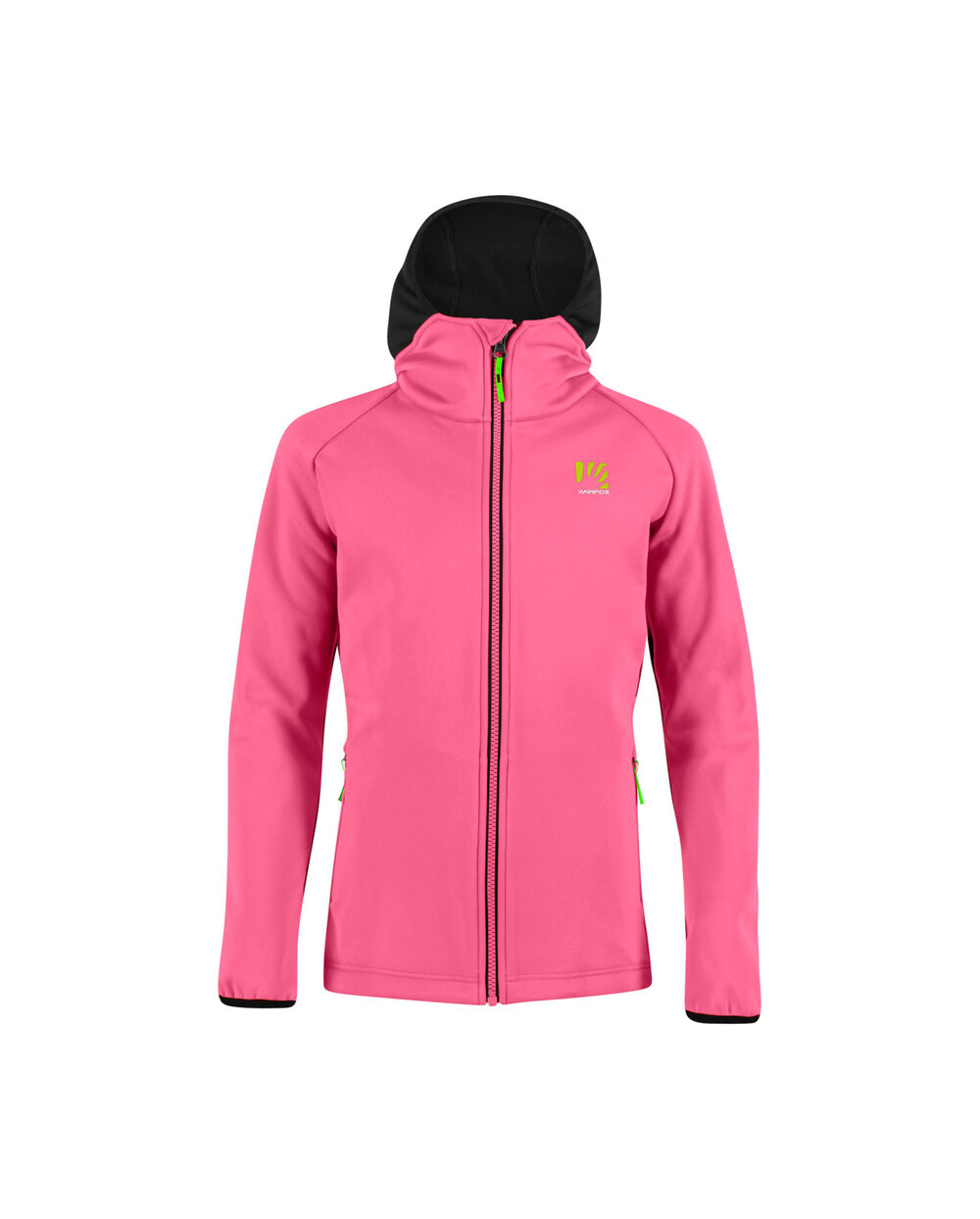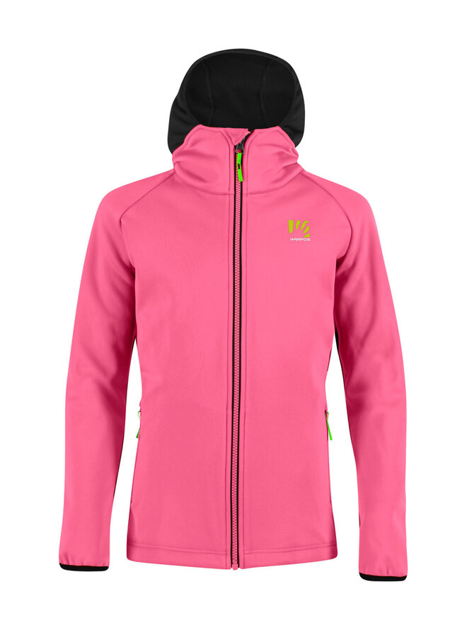 Kurtka dziecięca z kapturem Karpos Lavaredo przeznaczona jest do biegania i innych aktywności aerobowych w zimie. Dzięki hybrydowej konstrukcji przód zapewnia ochronę przed wiatrem, utrzymanie ciepła, natomiast oddychające boki i tył sprawnie odprowadzają pot i zapobiegają przegrzaniu.