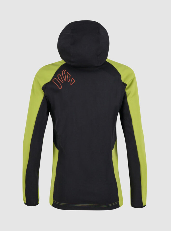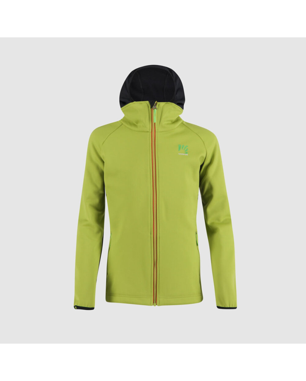 Kurtka dziecięca z kapturem Karpos Lavaredo przeznaczona jest do biegania i innych aktywności aerobowych w zimie. Dzięki hybrydowej konstrukcji przód zapewnia ochronę przed wiatrem, utrzymanie ciepła, natomiast oddychające boki i tył sprawnie odprowadzają pot i zapobiegają przegrzaniu.
