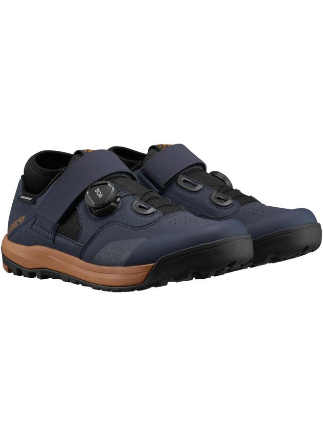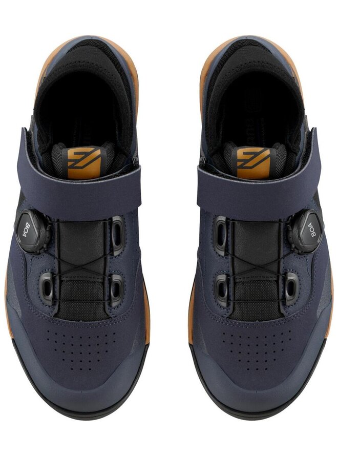 Flagowy trzeci model SPD do downhillu/enduro firmy SHIMANO zapewnia doskonałą przyczepność i kontrolę nad rowerem. Damskie buty na wysokim obcasie o specjalnie kobiecym kształcie zapewniającym najwyższy komfort jazdy Mieszanka gumy SHIMANO ULTREAD GE zoptymalizowana pod kątem enduro oraz wzór bieżnika podeszwy zapewniają niezawodne pedałowanie i przyczepność zarówno na rowerze, jak i poza nim. Podeszwa środkowa skrętna TORBAL 2.0 poprawia elastyczność zewnętrznej krawędzi podeszwy, zapewniając doskonałą kontrolę na agresywnych zjazdach i pokonywaniu zakrętów. System dopasowania BOA® L6 z plastikową osłoną zapobiega przypadkowemu zwolnieniu w przypadku zderzenia ze skałami i innymi zagrożeniami na szlaku. Sztywna, wzmocniona węglem podeszwa środkowa wspiera efektywne pedałowanie pod górę. Rozszerzona konstrukcja kanału pedału zapewnia stabilność nawet wtedy, gdy pedały nie są dokładnie zablokowane. Gąbczasta, warstwowa pianka EVA pochłania wstrząsy i poprawia elastyczność podeszwy, zapewniając lepszą stabilność podczas zjazdów. Umieszczenie SPD na środku stopy poprawia stabilność i kontrolę roweru. Elastyczny neoprenowy mankiet na kostce zapewnia dodatkową ochronę przed brudem i kamieniami. Trampki są kompatybilne z blokami SPD. Waga pary trzecich to 846g w rozmiarze 42. Zalecamy zmierzenie stopy i dobranie rozmiaru zgodnie z tabelą rozmiarów - zazwyczaj trzeba zamówić o jeden rozmiar większy niż normalnie nosisz.Szczegóły