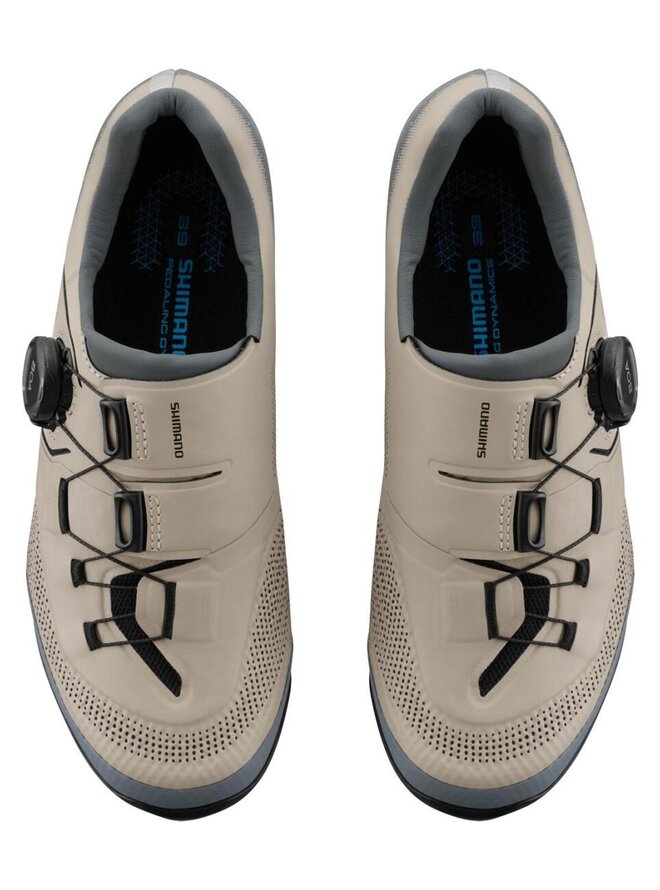 Solidne damskie buty XC dla początkujących zawodników, którzy cenią sobie wysokie osiągi i styl. System BOA® z gumowanym kołem L6C i osłoną ochronną umożliwia łatwą regulację w locie. Podeszwa środkowa wykonana z częściowo pochodzącego z recyklingu nylonu ze wzmocnieniem z włókna węglowego. Lekka gumowa podeszwa SHIMANO ULTREAD XC zapewnia doskonałą przyczepność podczas wyścigów. Palce i podeszwa środkowa wykonane w 19% (wagowo) z materiału pochodzącego z recyklingu. Elegancka cholewka z perforowanej skóry syntetycznej z nowym wzorem zapięcia. Regulowane uchwyty z kolcami - dodaj kolce do palców, aby zapewnić dodatkową przyczepność na śliskich szlakach. Specjalny kształt kopyta dla kobiet zapewniający maksymalny komfort. Kompatybilne ze stoperami SPD. Waga: od 620g (nr 43). Zalecamy zmierzenie stopy i dobranie rozmiaru zgodnie z tabelą rozmiarów - zazwyczaj trzeba zamówić o jeden rozmiar większy niż normalnie nosisz.Szczegóły