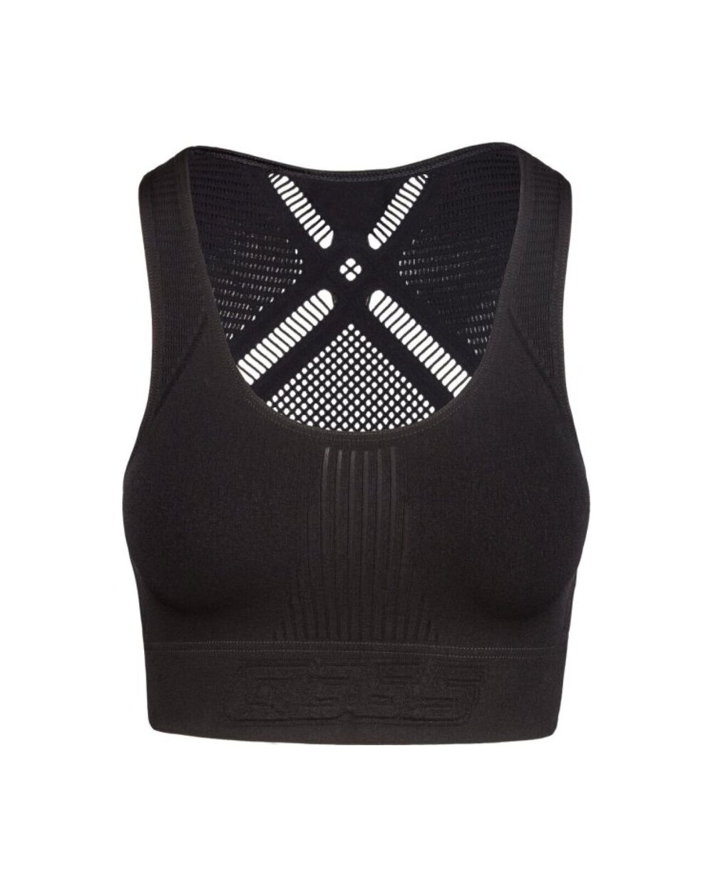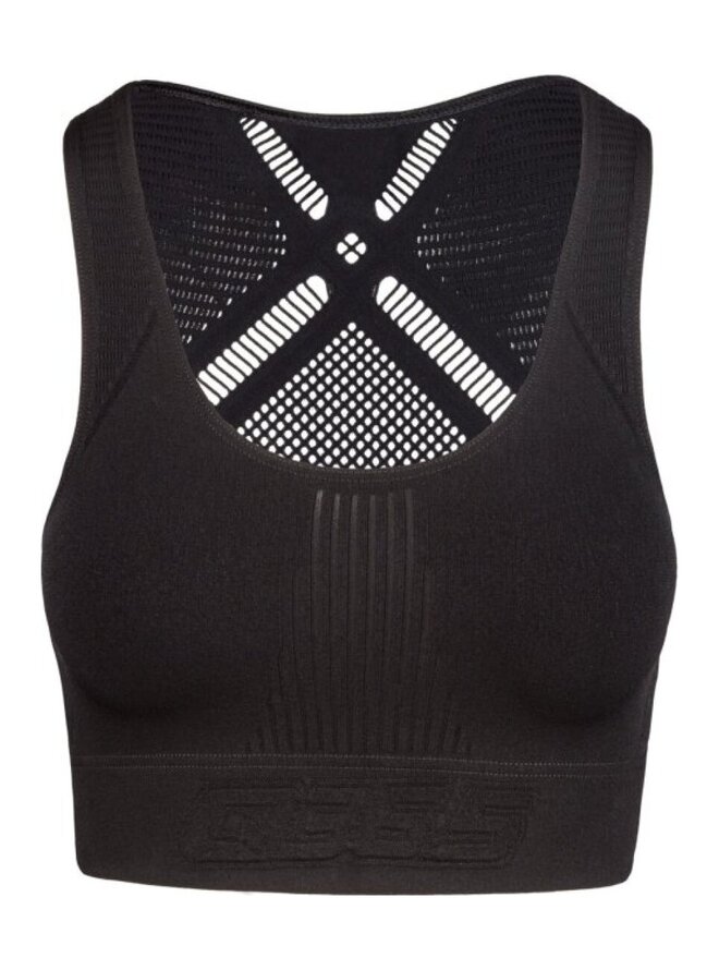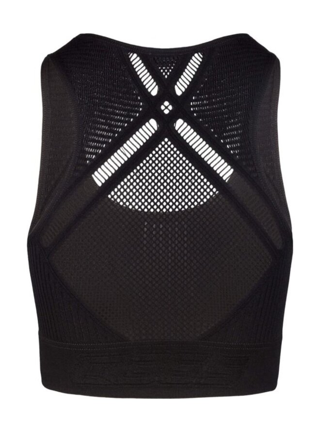 Dział badań i rozwoju opracował nowy bezproblemowy stanik, który wykorzystuje bezproblemową technologię dzianin - ten specjalny projekt umożliwia łatwe wsparcie podczas jazdy bez kompromisów w dziedzinie oddychalności i usuwania wilgoci. Biustonosz jest zaprojektowany z miękkimi paskami, lekką kompresją i szerokim obszarem tułowia (bez elastycznych pasków), który otacza ciało bez poruszania go i gwarantuje idealną adaptację w pozycji napędowej. Materiał poliamidowy (przędza 6.6) ma z tyłu bardziej otwartą strukturę siatki, dostosowując się do regionalnego poziomu pocenia się ciała w celu utrzymania stabilnej temperatury. Idealna warstwa skóry na trening roczny.Szczegóły