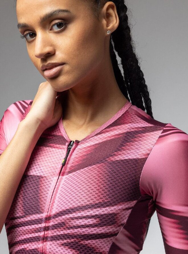 Lekki i wysoce oddychający kombinezon Techno PR-E łączy w sobie wygodę, wydajność i styl w jednym, wyrafinowanym technicznie elemencie. Lekki i oddychający materiał skutecznie odprowadza wilgoć i utrzymuje skórę suchą nawet przy dużym obciążeniu, a anatomiczny krój szanuje kobiecą sylwetkę. Całkowicie otwarty top ułatwia zakładanie, a schludne spodenki kompresyjne wspierają mięśnie, zmniejszają zmęczenie i zapewniają maksymalną swobodę ruchów.