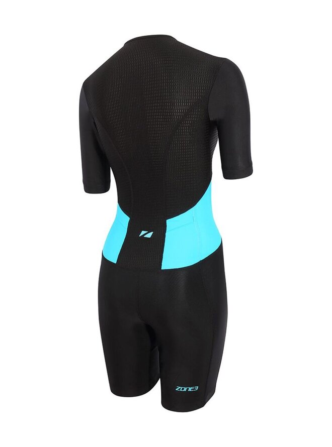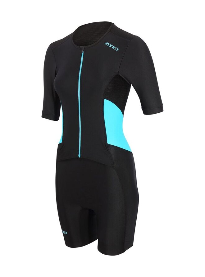 Women's Activate Short Sleeve Full Zip Trisuit to damski kombinezon triathlonowy zaprojektowany z myślą o maksymalnym komforcie i niezawodnej wydajności podczas treningów i wyścigów. Model z popularnej linii Activate to idealny wybór zarówno dla początkujących, jak i średniozaawansowanych triatlonistów poszukujących wysokiej jakości kombinezonu triathlonowego w przystępnej kategorii cenowej. Kombinezon posiada krótkie rękawy, które poprawiają aerodynamikę i jednocześnie zapewniają lepszą ochronę przed słońcem. Zamek błyskawiczny na całej długości z przodu umożliwia łatwe ubieranie i skuteczną wentylację podczas jazdy na rowerze i biegania. Zastosowany elastyczny i oddychający materiał jest szybkoschnący, przyjemny dla ciała i zapewnia optymalną regulację temperatury nawet podczas dłuższego wysiłku. Komfort podnosi wkładka triathlonowa, która została zaprojektowana tak, aby nie przeszkadzać w bieganiu, a jednocześnie zapewniać wystarczający komfort na rowerze. Silikonowe zakończenia spodni zapobiegają ich podwijaniu się i utrzymują kombinezon na miejscu przez cały wyścig. Z tyłu znajduje się praktyczna kieszonka na żel lub drobne drobiazgi.Szczegóły