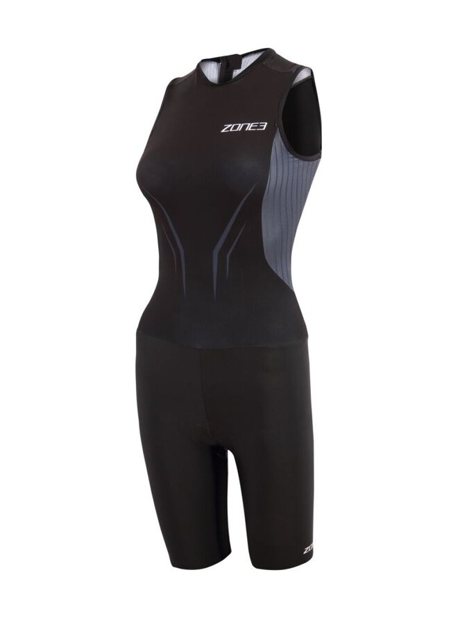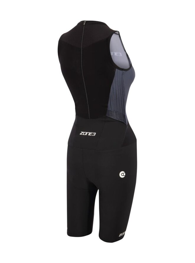 Damski kombinezon bez rękawów Zone3 Aeroforce-X przeznaczony jest dla sportowców, którzy oczekują maksymalnej wydajności, niskiego oporu aerodynamicznego i komfortu we wszystkich dyscyplinach triathlonu. W modelu tym zastosowano najwyższej jakości materiały techniczne i panele zoptymalizowane aerodynamicznie, które zostały przetestowane w tunelu aerodynamicznym przez czołowych sportowców, aby osiągnąć lepsze czasy jazdy na rowerze bez uszczerbku dla pływania i biegania. Przednia część kombinezonu wykonana jest z wysoce technicznego materiału Aeroforce Soft-Touch o doskonałej oddychalności, elastyczności 360° i wodoodpornej nano-obróbce, która zmniejsza opór w wodzie i poza nią. Panele pod pachami i po bokach wykonane są z tkaniny Aerostripe, która poprawia aerodynamikę i stabilność skafandra podczas ćwiczeń. Tylną część wykonano z lekkiego materiału Airflo, który skutecznie reguluje temperaturę ciała podczas intensywnych wysiłków. Ten kombinezon bez rękawów ma wycięte laserowo otwory i lekkie silikonowe uchwyty, które utrzymują kombinezon na miejscu bez zbędnych szwów, zwiększając komfort i zmniejszając opór powietrza. Zintegrowany elastyczny zamek błyskawiczny z tyłu pozwala na łatwe ubieranie i optymalną pozycję podczas części rowerowej. Aerodynamicznie zaprojektowane pojemniki na odżywki zapewniają miejsce na żele bez wpływu na wydajność. Kombinezon uzupełnia wysokowydajna wkładka (wkładka) specjalnie zaprojektowana do triathlonu, która zapewnia komfort zarówno podczas jazdy na rowerze, jak i biegania.Szczegóły