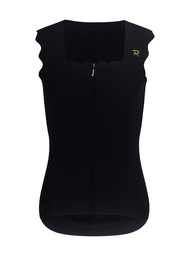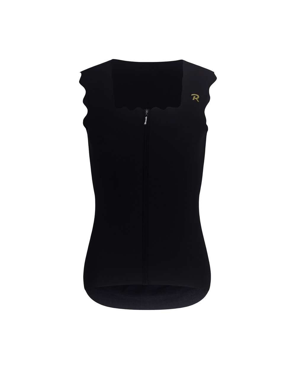 Koszulka rowerowa bez rękawów z idealnie zaokrąglonym dołem, która dodaje blasku również strojom rowerowym. Grubsze faliste ramiączka i kwadratowy dekolt spłaszczają proporcje ramion i każdy rodzaj dekoltu. Nie brakuje w nim wyposażenia, jakiego oczekuje się od wysokiej jakości koszulki. Zamek błyskawiczny na całej długości z przodu i osłona szyi. Potrójna kieszeń z zapinaną na zamek kieszenią zabezpieczającą. Bezszwowy dół z antypoślizgowym nadrukiem z tyłu koszulki.