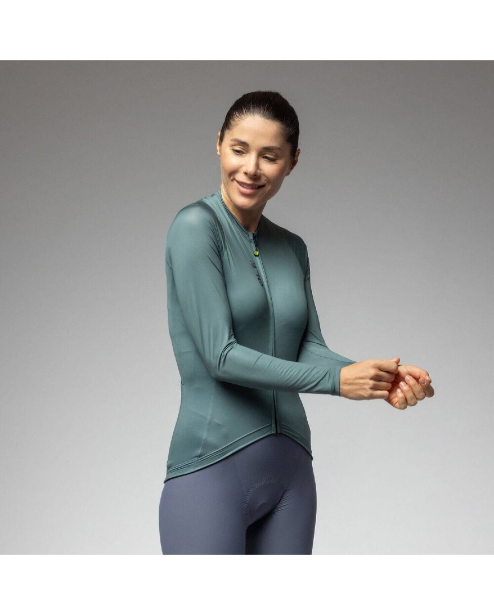Letnia koszulka kolarska z długim rękawem - PRAGMA COLOR BLOCK - zielony