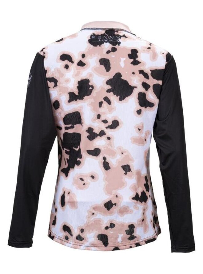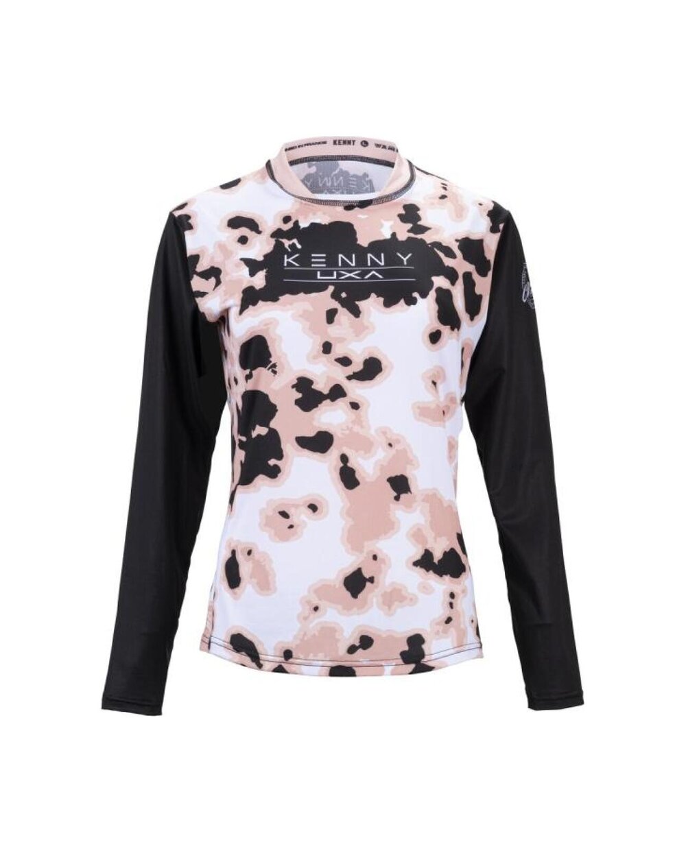 Damski krój przylegający do ciała z długimi elastycznymi rękawami. Oddychający materiał na plecach i pod pachami dla jeszcze lepszej wentylacji. 100% poliester. Niepowtarzalny nadruk sublimacyjny. Wykończenie lamówką. Wygodny kołnierz z lycry. XS/34, S/36, M/38, L/40, 42/XL Kolory: czarny/różowy/biały, czarny/sky, khaki/granatowy, granatowy/kwiatowy idealny w połączeniu ze spodenkami CHARGER 2504040Szczegóły