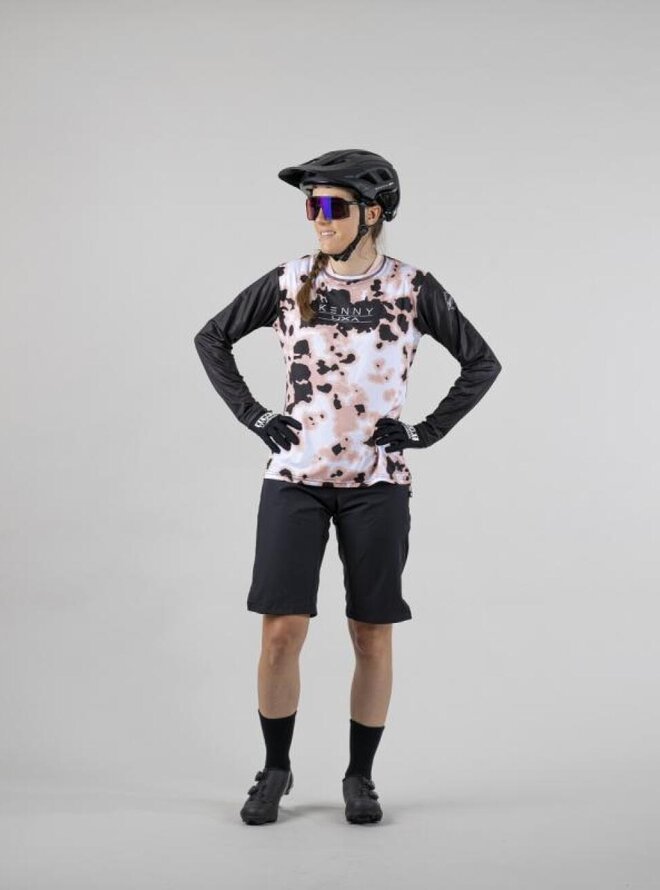 Letnia koszulka kolarska z długim rękawem - CHARGER - czarny/biały/różowy
