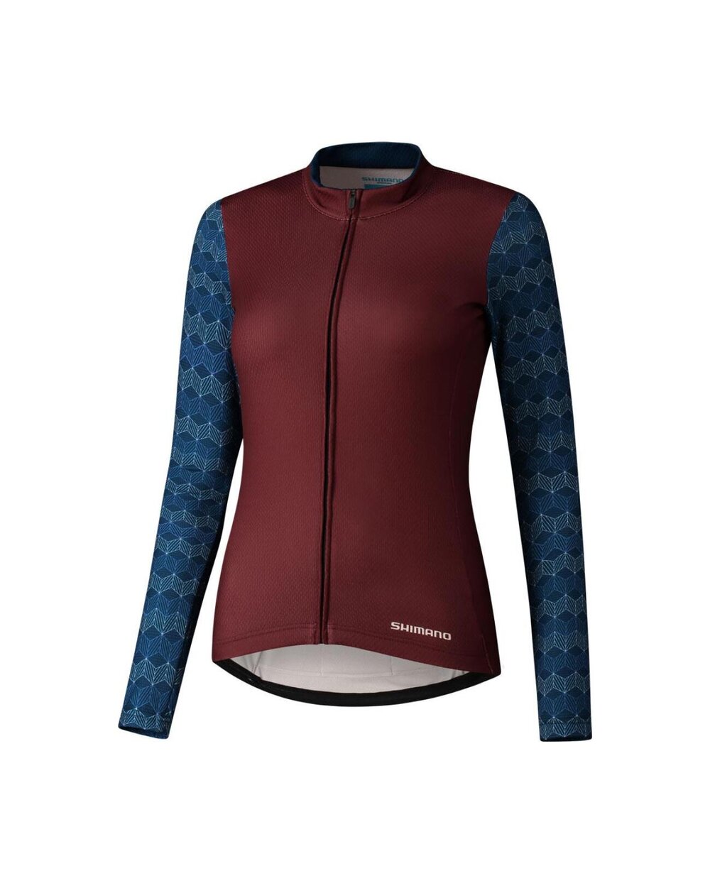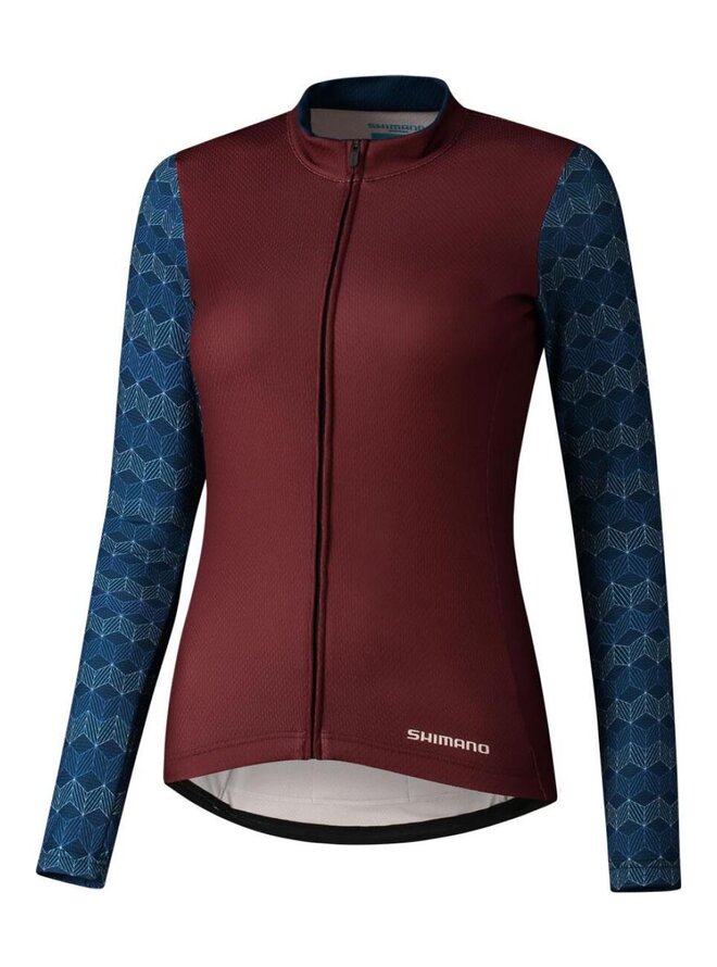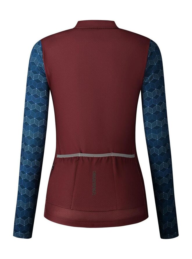 Zimowa koszulka kolarska z długim rękawem - KAEDE PRINTED LONG - bordowy/niebieski