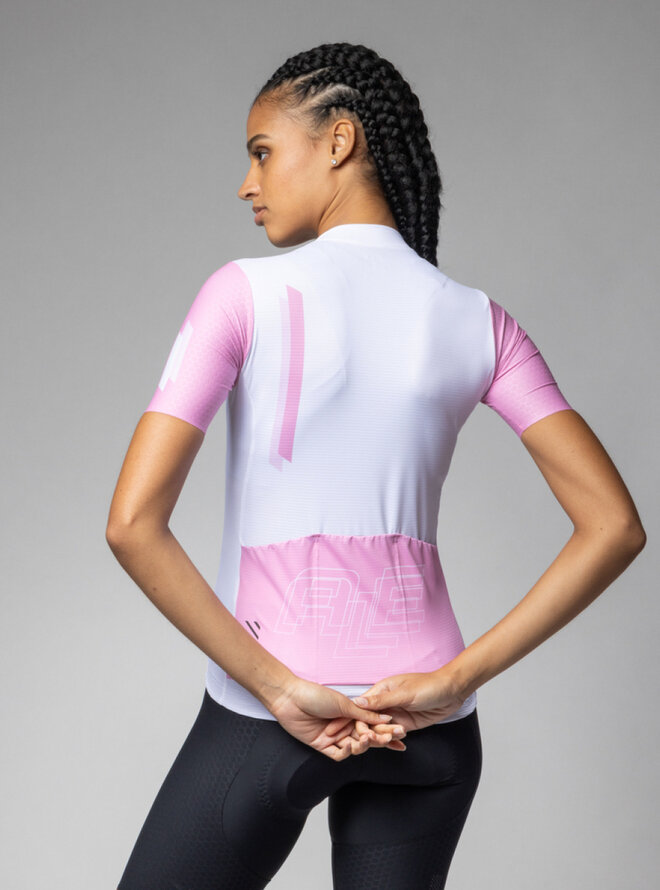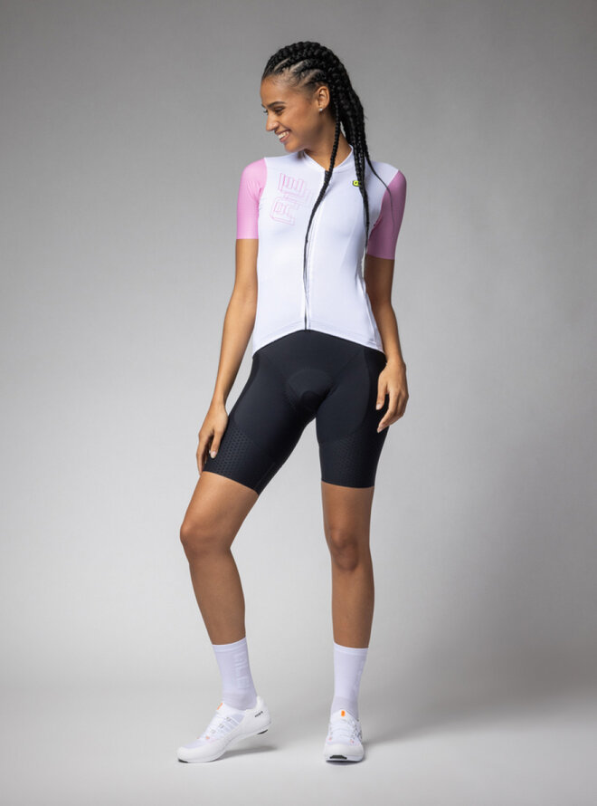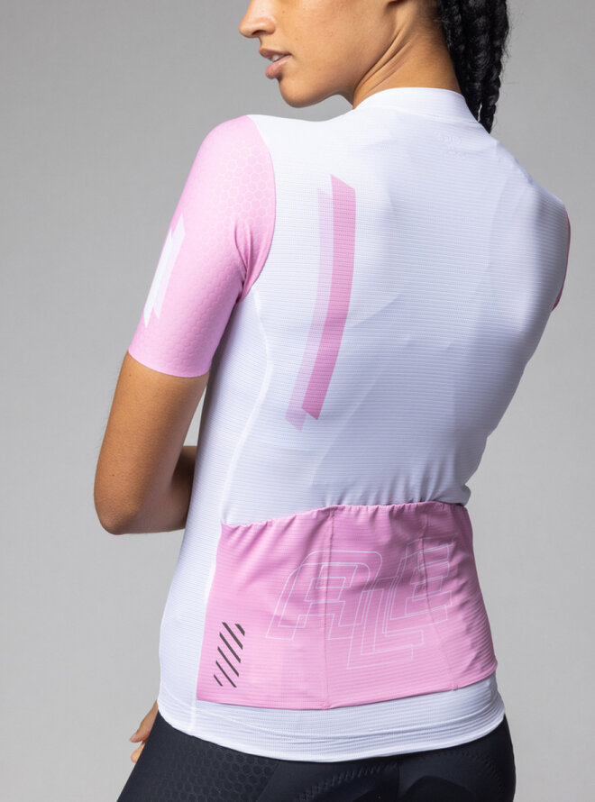 Koszulka kolarska z krótkim rękawem - FOLLOW ME PR-E - biały/różowy