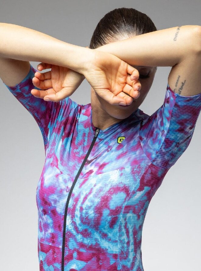 Koszulka kolarska z krótkim rękawem - PR-E CLOROFILLA - niebieski/fioletowy