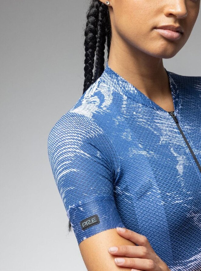 Koszulka kolarska z krótkim rękawem - PR-E FAN - niebieski/biały