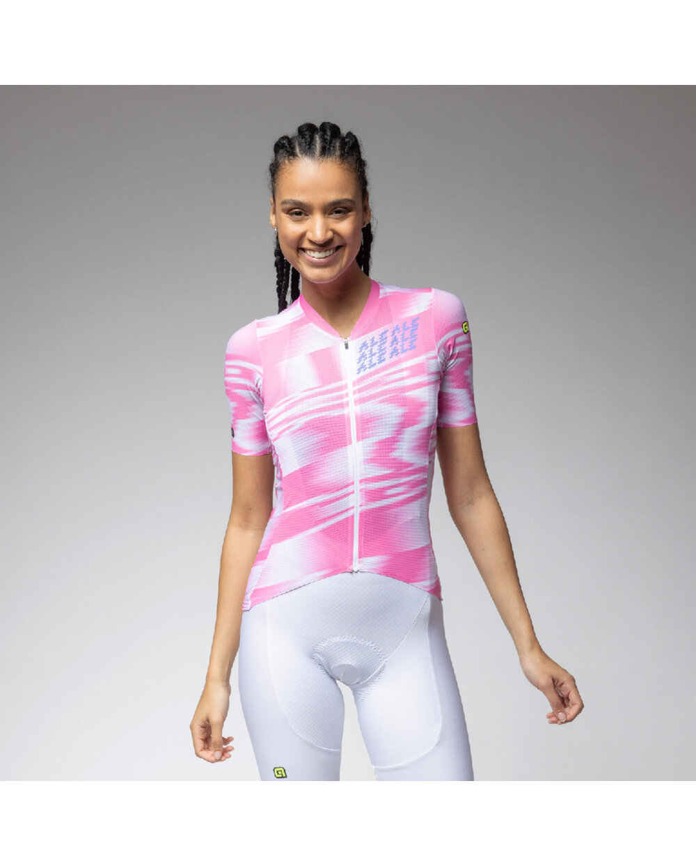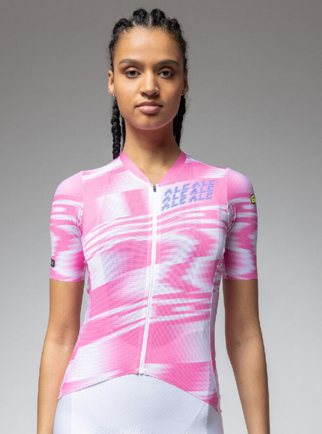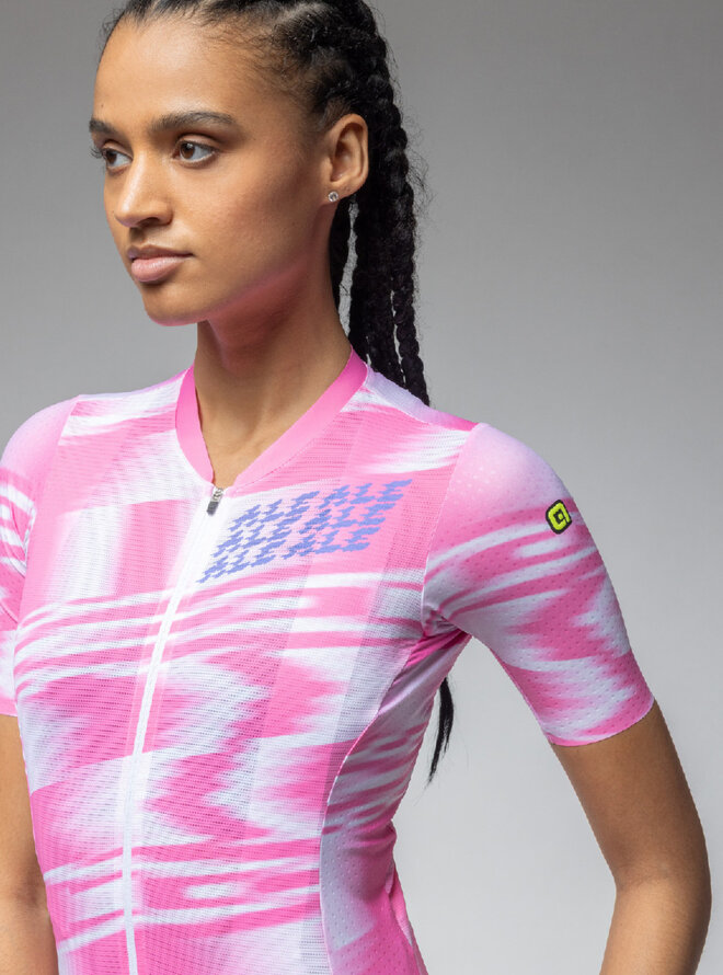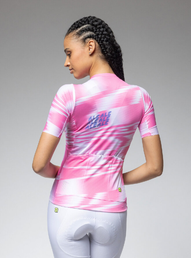 Koszulka kolarska z krótkim rękawem - TECHNO PR-E - różowy/biały