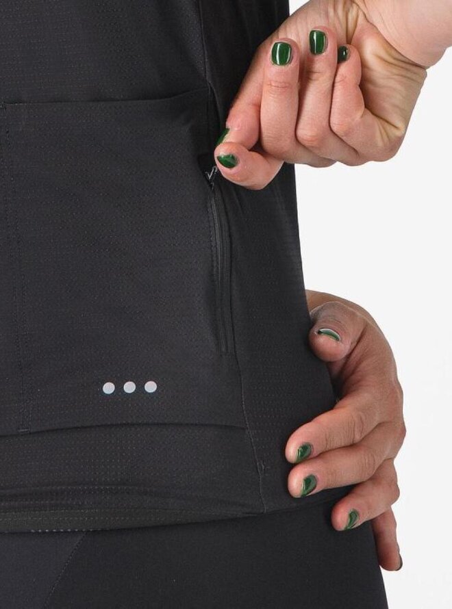 Nazwa mówi wszystko. Koszulka Premio EVO W została zaprojektowana z myślą o maksymalnym komforcie i wydajności. Dostosowaliśmy technologię i materiał zastosowany w spodenkach Premio EVO do koszulki. Dwie oddzielne elastyczne tkaniny oferują szereg korzyści: ścisłe dopasowanie, doskonałe odprowadzanie wilgoci, maksymalna aerodynamika, lekkość, trwałość, pięknie gładka obróbka i miękkość w dotyku. Rękawy mają prążkowaną konstrukcję, podobnie jak spodenki, co zapewnia idealne dopasowanie i dopasowanie, ale nie są zbyt ciasne. Tkanina poliestrowa z recyklingu na korpusie jest lekka, miękka i elastyczna, dzięki czemu idealnie dopasowuje się do ciała. Doskonale odprowadza także pot, gdy na zewnątrz panuje upał. Aby koszulka była idealna, zadbaliśmy o takie detale jak zamek błyskawiczny i elastyczne wykończenie w pasie. Idealnie pasuje do spodni Premio EVO W.