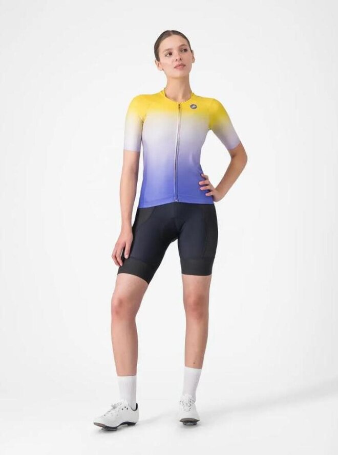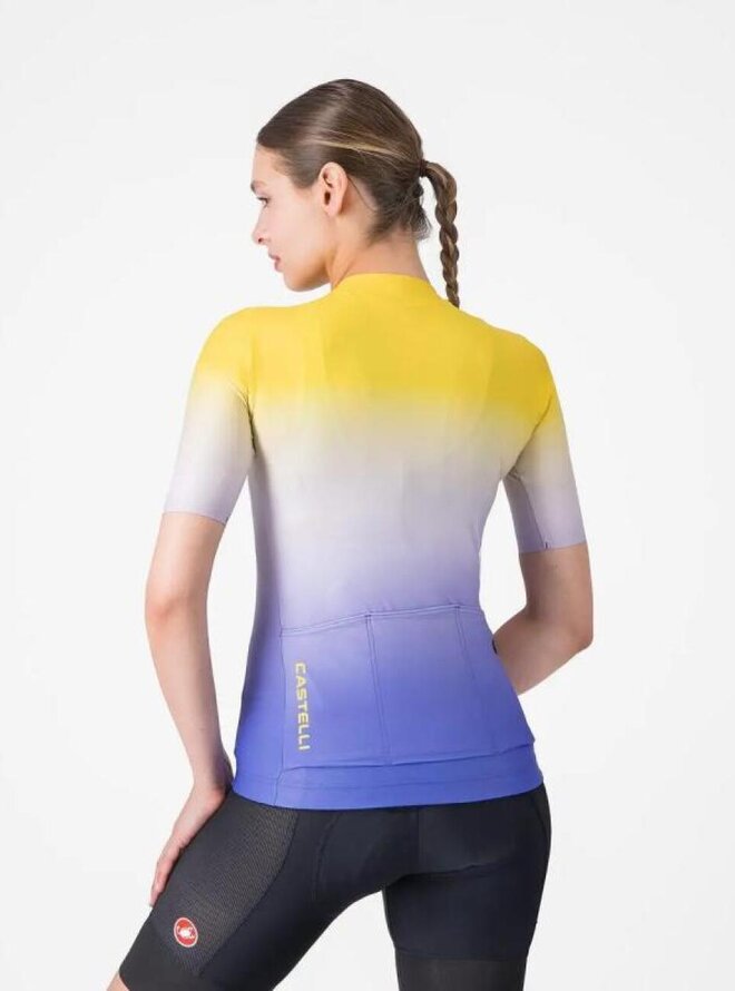 Koszulka kolarska z krótkim rękawem - UPF W - żółty/fioletowy