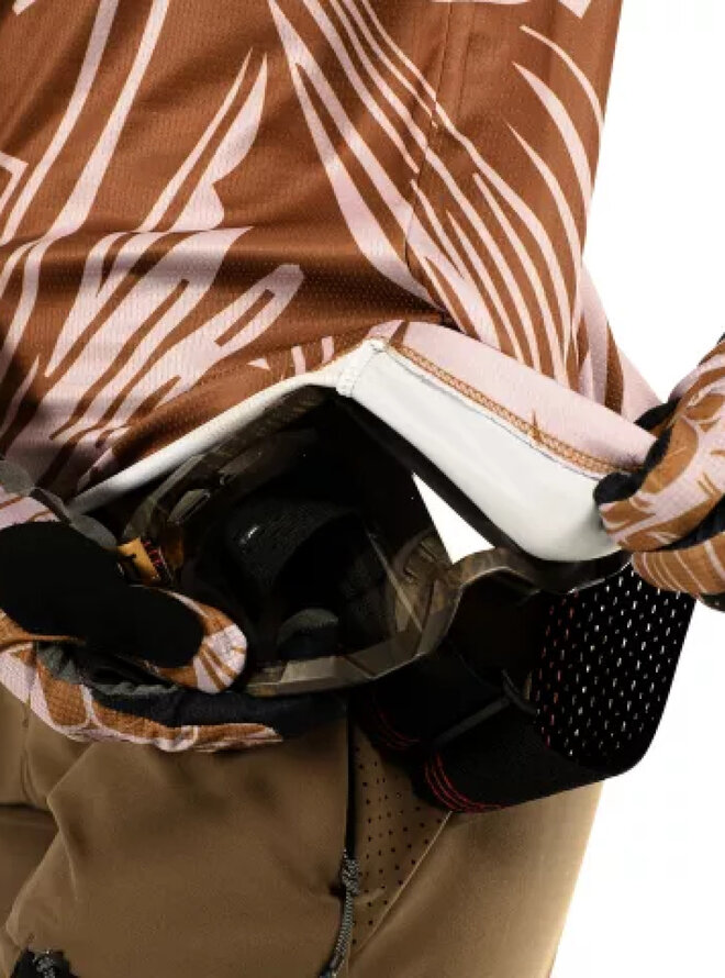 Jersey, który świetnie działa w cieplejszych dniach, dzięki tkaninowi Iceyarn z naturalnym efektem chłodzenia i rzeźbioną wentylacją laserową. Sportowe regularne cięcie umożliwia noszenie cienkich ochraniaczy pod koszulką. Rękawy są nieco dłuższe i kończą się tuż nad pachą. Mała kieszeń z szmatką z mikrofibry umożliwia łatwe i szybkie czyszczenie szklanek lub okularów przeciwsłonecznych.