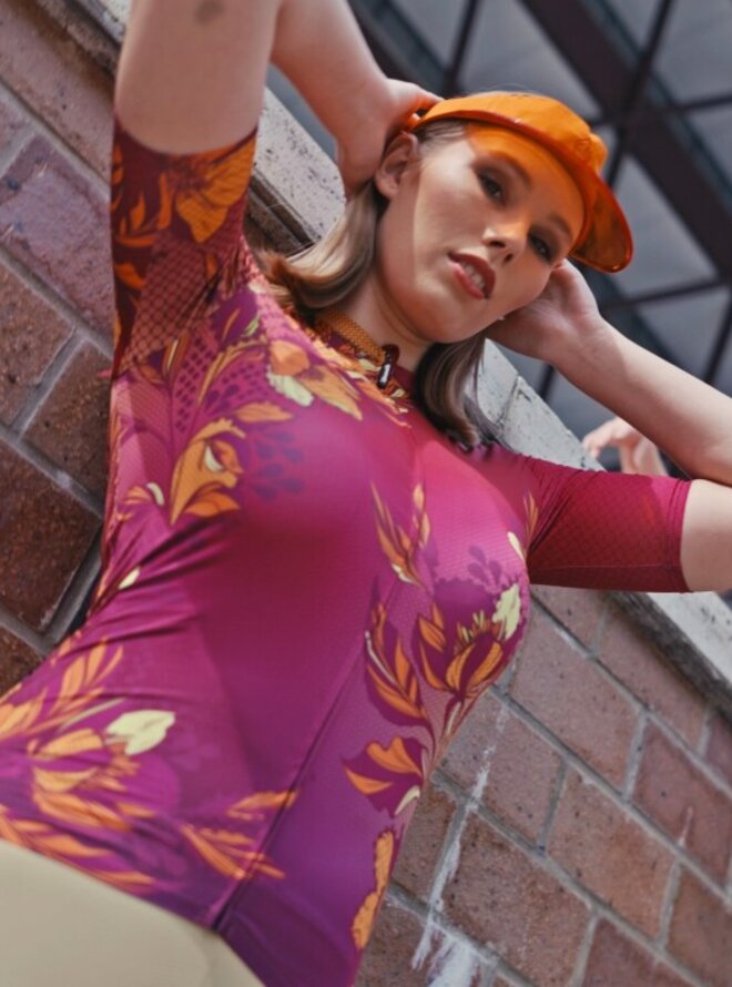 Koszulka kolarska z krótkim rękawem - BAROC - fioletowy/żółty