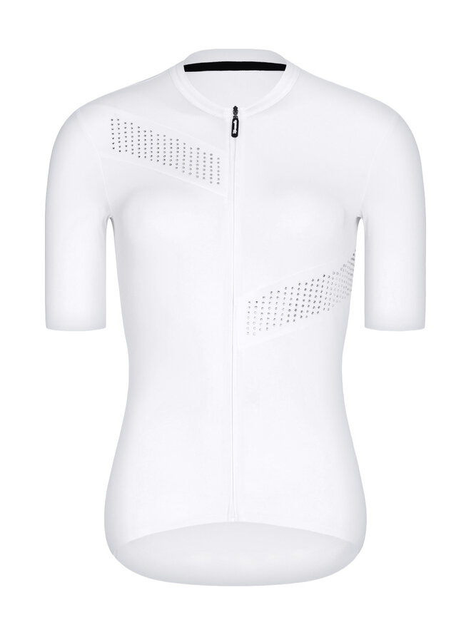 Rivanelle Crystelle to prawdziwa biżuteria, którą możesz zabrać na rower. Na pierwszy rzut oka minimalistyczny design ujawnia się szczegółowo podczas ruchu. Drobne akcenty ligotowe, które błyszczą ton w ton z koszulką. Kamienie są precyzyjnie osadzone w ukośnych liniach, co nadaje projektowi sportowy charakter. Lekki, wysokogatunkowy materiał jest bardzo przyjemny dla ciała, a jednocześnie niezwykle przewiewny. Dzięki swojej dobrej elastyczności dopasowuje się do każdej sylwetki, jednocześnie wygładzając jej kontury czy mankamenty. Koszulka jest pełna praktycznych rozwiązań, a każdy szczegół został zaprojektowany z myślą o Twojej wygodzie. Zamek błyskawiczny na całej długości z przodu i osłona szyi. Potrójna kieszeń z zapinaną na zamek kieszenią zabezpieczającą. Bezszwowy dół z antypoślizgowym nadrukiem z tyłu koszulki. Dla rowerzystek, które kochają minimalizm, ale wiedzą, że szczegóły mają znaczenie.Szczegóły