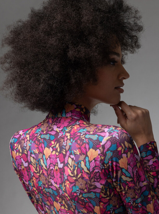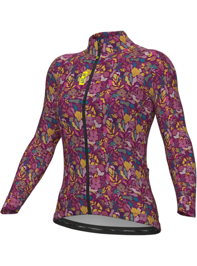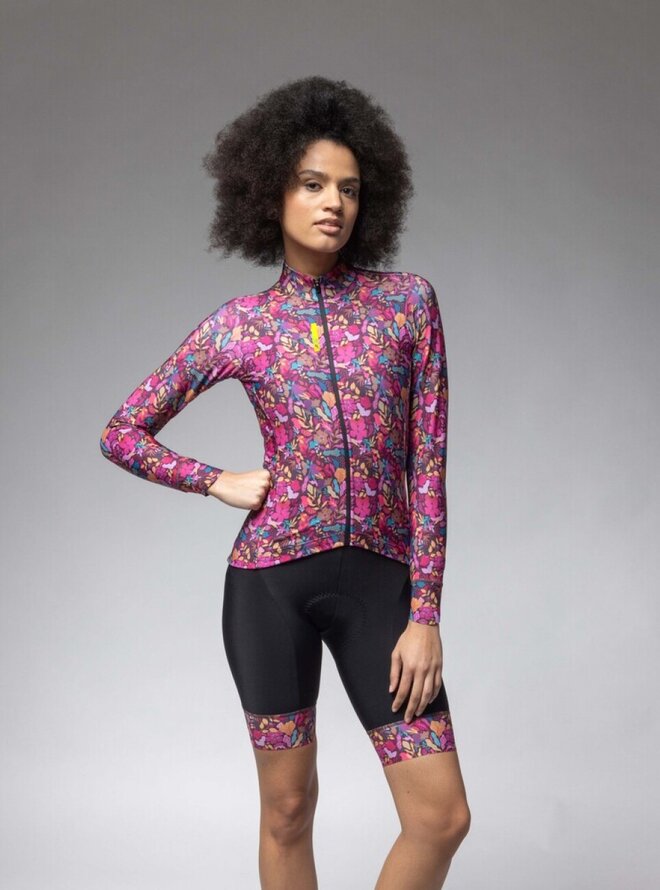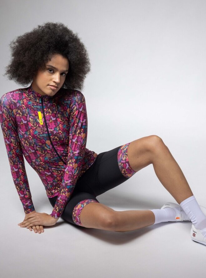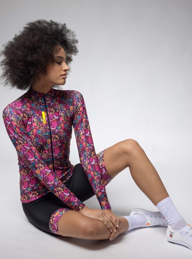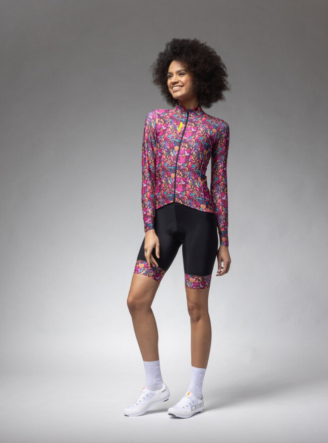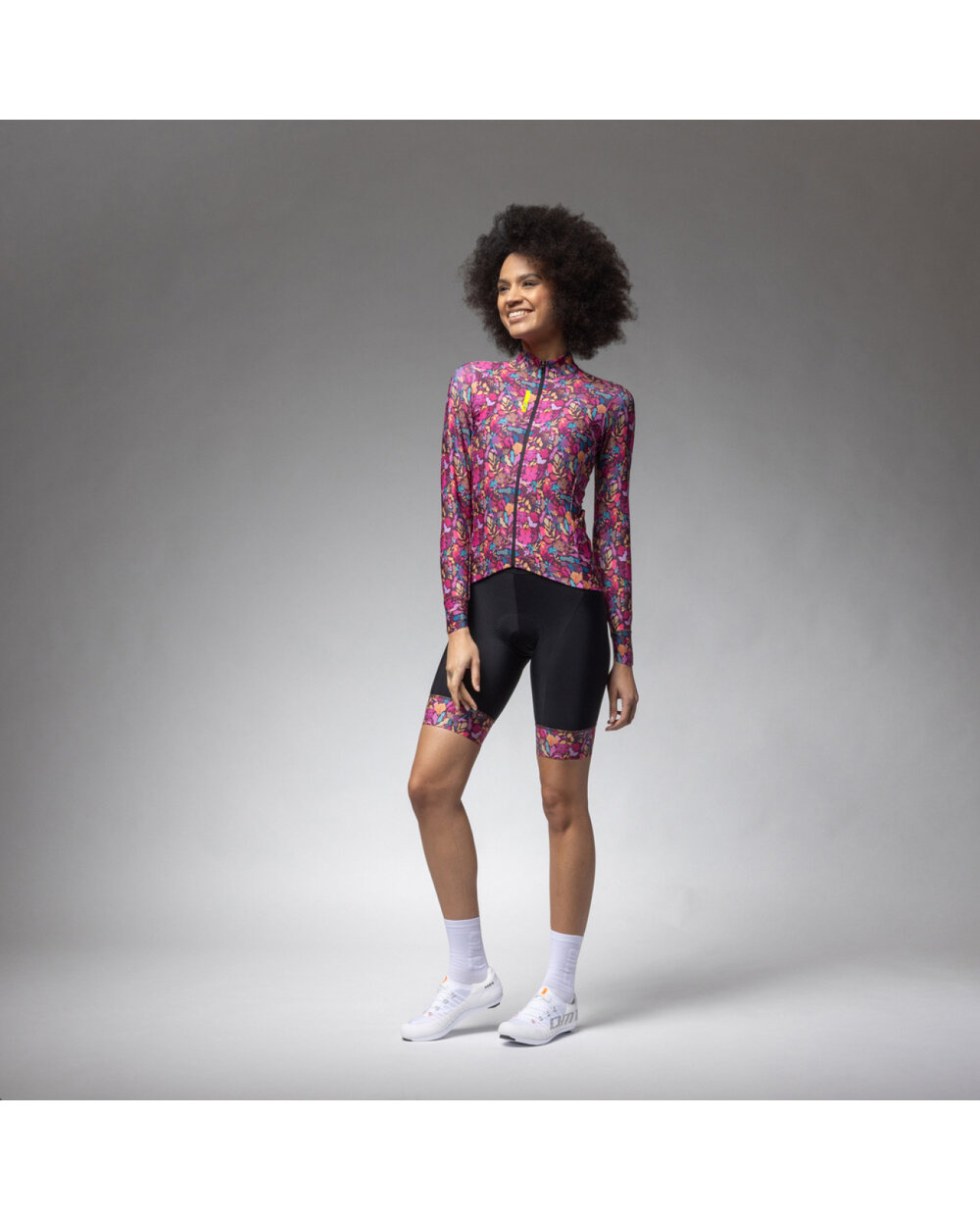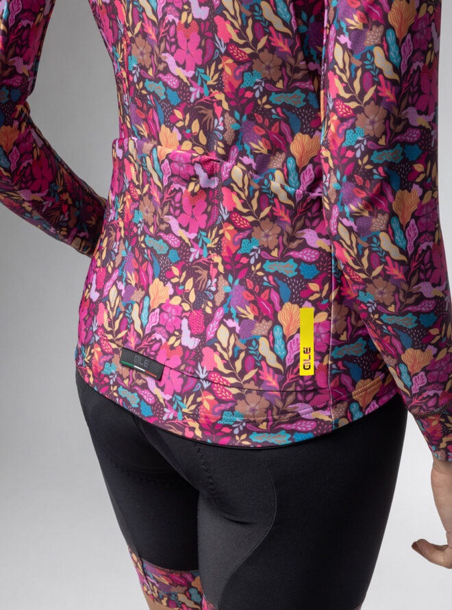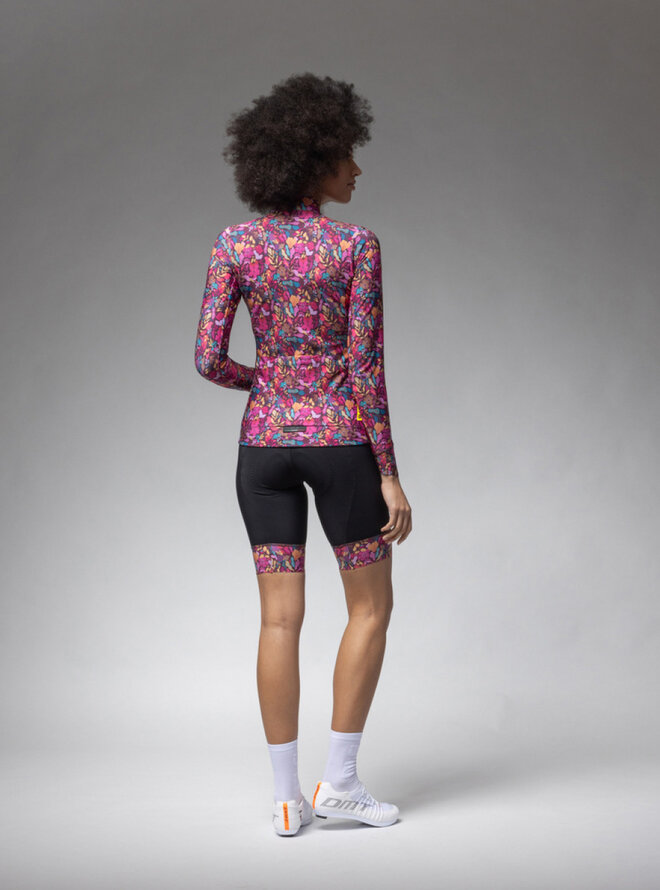 Zimowa koszulka kolarska z długim rękawem - PRAGMA FLOWERY LADY - różowy/kolorowy