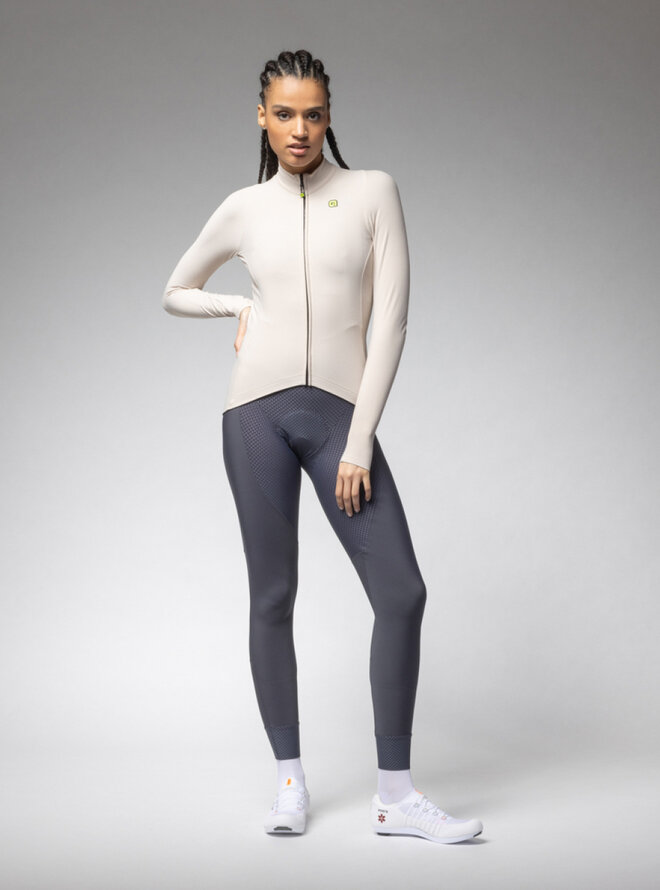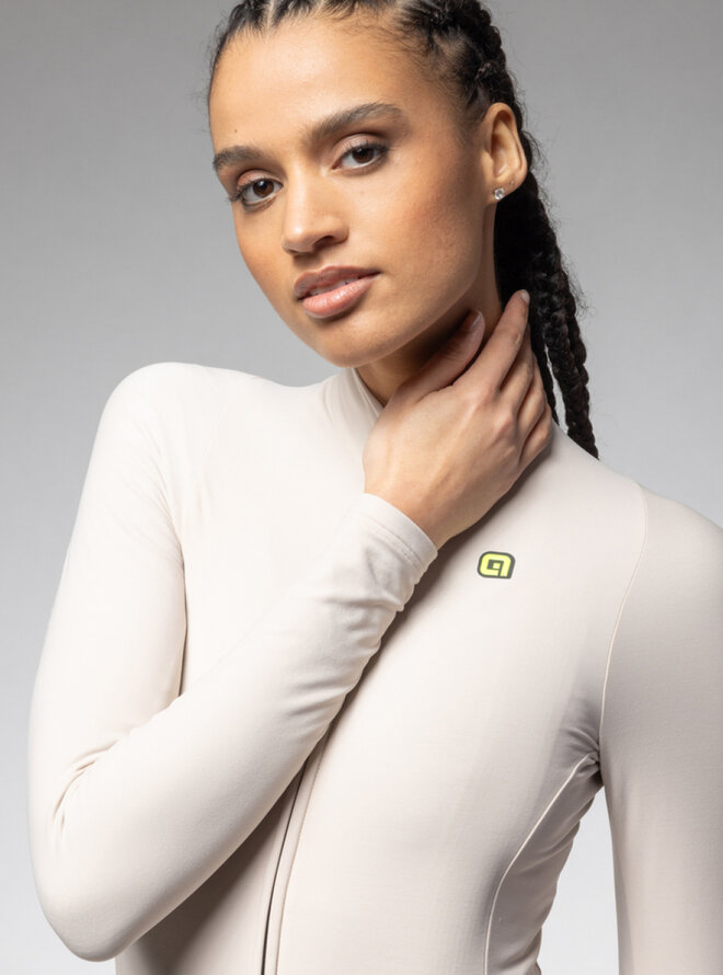 Zimowa koszulka kolarska z długim rękawem - R-EV1 WARM RACE 2.0 LADY - kość słoniowa