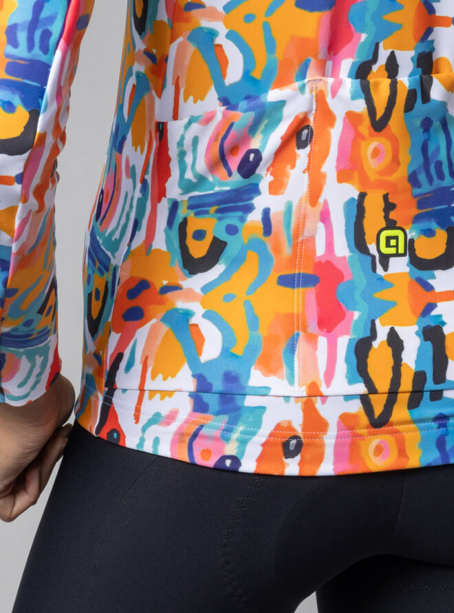 Damska koszulka z długim rękawem Alé Tribal jest wykonana z materiału Micro Soft, który jest miękki i lekko aksamitny. Koszulka Tribal jest idealna na przejściowe pory roku. Dzięki oddychalności i zdolności do zatrzymywania ciepła zapewnia maksymalny komfort, a ergonomiczny krój przylega do ciała jak druga skóra. Rękawy z nieobrębionymi mankietami eliminują zbędne warstwy, a trzy przestronne tylne kieszenie zapewniają mnóstwo miejsca na wszystkie niezbędne rzeczy.Szczegóły