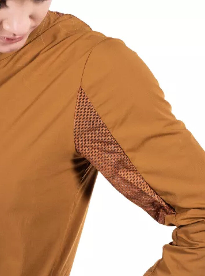 - BENEFITY: elastyczny mankiet na brzegu, składany do kieszeni, wydłużony tył