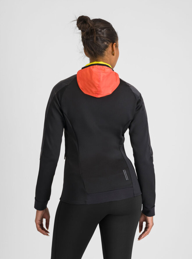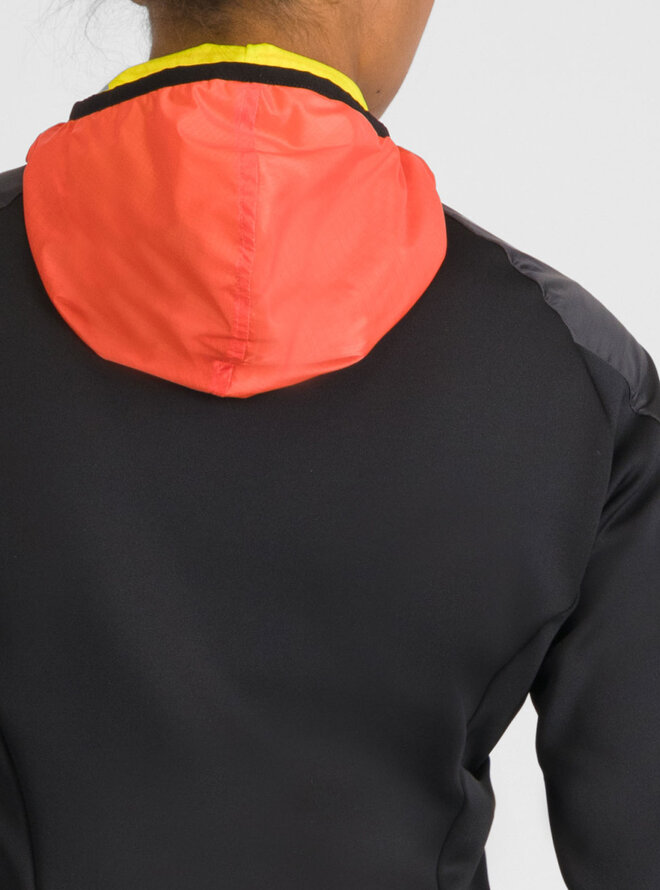 - Tylna część oraz dolna część rękawów wykonane są z oddychającego, rozciągliwego materiału, który zapewnia cyrkulację powietrza i odprowadza nadmiar wilgoci. Ta właściwość zapobiega przegrzaniu i utrzymuje komfort podczas intensywnego ruchu.
