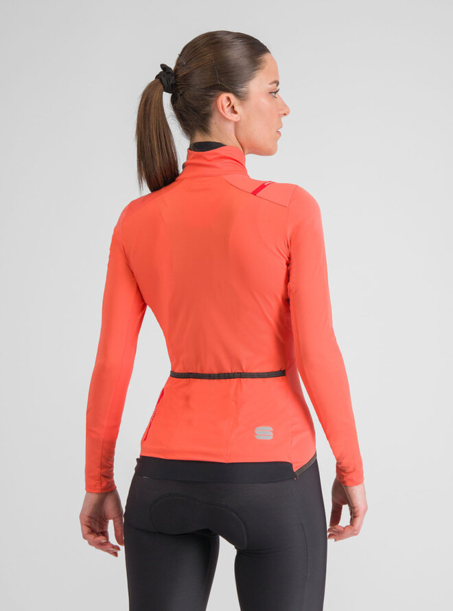 Damska kurtka rowerowa Sportful Fiandre Light jest idealna nasuchą pogodę w okresie letnim i przejściowym. Noszą go także zawodowe kolarki podczas długich sesji treningowych i wyścigów. Dzięki funkcjonalnym materiałom szybko odprowadza pot ze skóry i doskonale chroni przed wiatrem, lekkim deszczem/mżawką. Wyższy kołnierz i przedłużony tył również zapewniają lepszą ochronę. Znajdują się tu także pojemne kieszenie, które nie zwisają nawet po napełnieniu i tym samym nie pogarszają ogólnego komfortu jazdy.