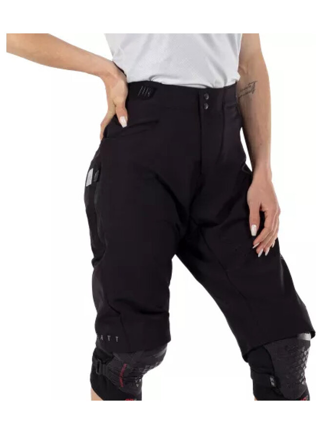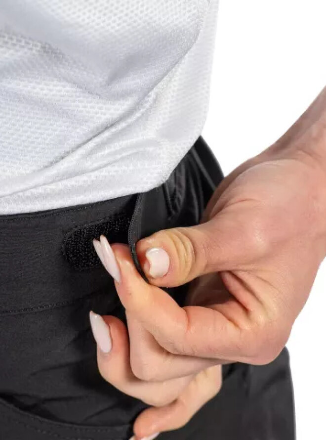 ultralekkie i wytrzymałe damskie spodenki trailowe, które zapewniają wyjątkowy krój i wygodę. Wyposażone są w wyjmowaną siateczkę o podwójnej gęstości, specjalnie zaprojektowaną dla kobiet. Te spodenki łączą wygodę i praktyczność - mają dwie boczne kieszenie zapinane na zamek i dwie otwarte przednie kieszenie. Elastyczny panel tylny zapewnia swobodę ruchów, a wodoodporny DWR chroni obróbkę przed lekkim deszczem. Wewnętrzny elastyczny pas z regulowanymi taśmami VelCro pozwala na dokładne dopasowanie. Wygodny krój jest idealny do jazdy wyczynowej, a konstrukcja uwzględnia szeroki zakres temperatur i warunków jazdy.