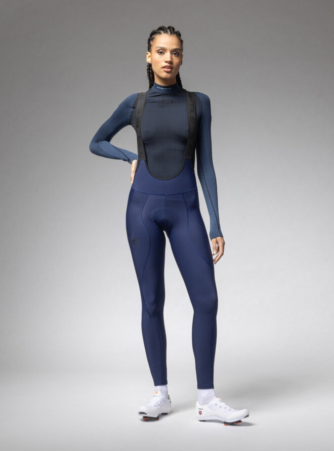 Długie spodnie kolarskie z szelkami - PRAGMA WINTER - niebieski