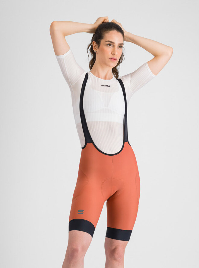 Sportful GIARA 2 damskie spodenki z szelkami Sienna Glow zostały zaprojektowane do wydajnej jazdy szosowej oraz długich treningów. Zapewniają optymalny komfort, wsparcie i aerodynamiczny krój, który zwiększa efektywność pedałowania. Dzięki wysokiej jakości wkładce nadają się również do warunków wyścigowych.