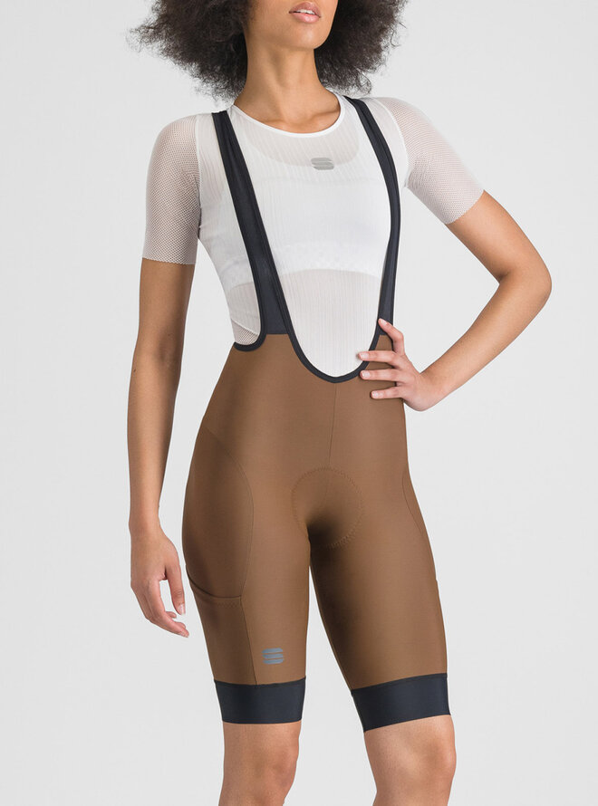 Krótkie spodnie kolarskie z szelkami - GIARA 2 W - brązowy