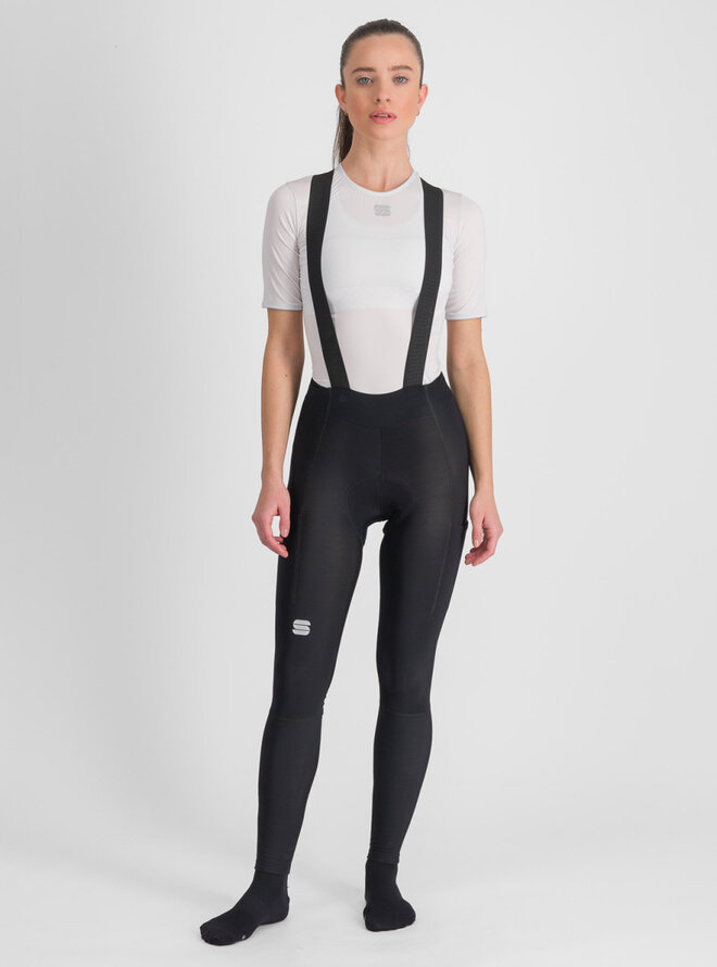 Długie spodnie kolarskie z szelkami - SUPERGIARA W - czarny