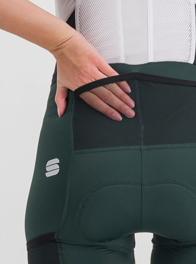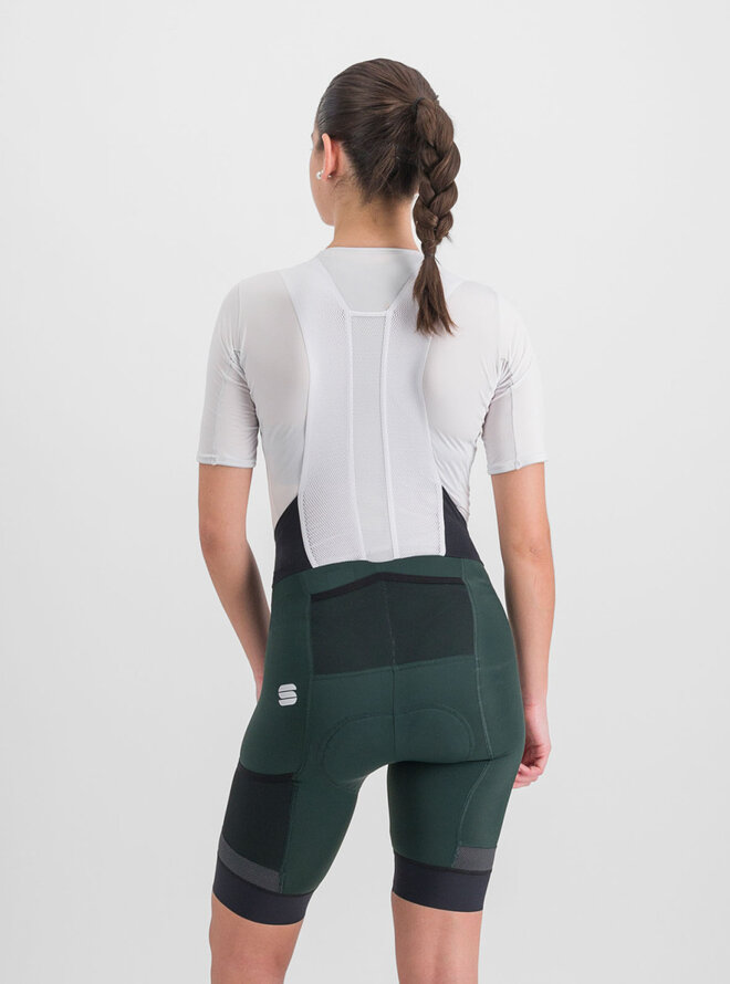 Damskie spodenki rowerowe Sportful SuperGiara idealnie nadają się na długie przejażdżki w trudnym terenie. Składają się z odpornego na ucisk i ścieranie materiału na nogawkach, anatomicznie ukształtowanych pasków oraz wkładki Total Comfort Pro, która doskonale amortyzuje nierówności na drodze. Zawierają także trzy kieszenie na wszystkie niezbędne rzeczy. Aby zapewnić lepszą widoczność w warunkach słabego oświetlenia, spodenki rowerowe są wyposażone w odblaskowe paski.