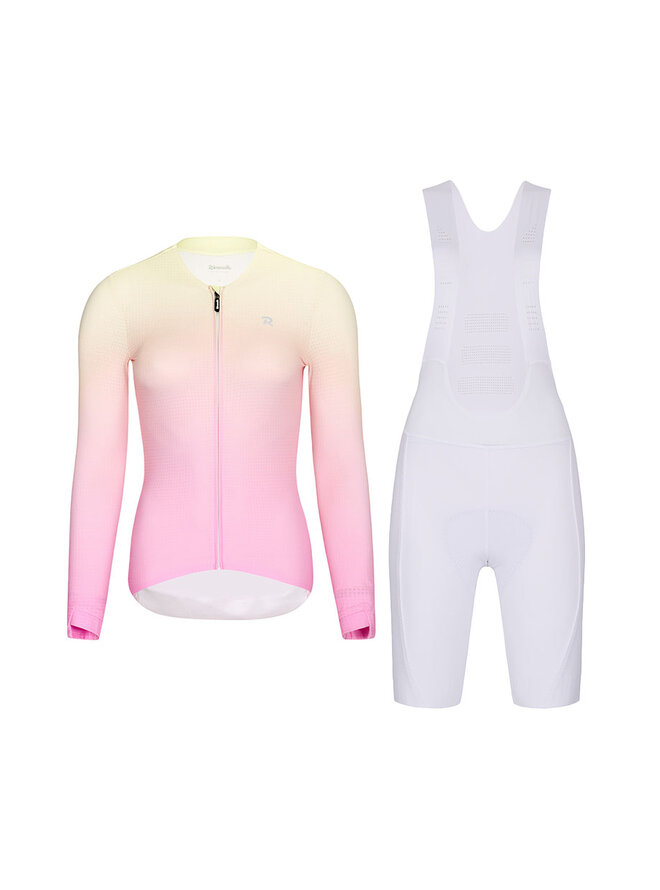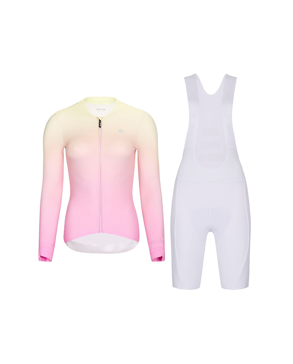 Koszulka kolarska z długim rękawem i spodnie - ELEVATE - biały/różowy/kolorowy