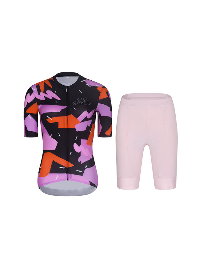 Krótka koszulka kolarska i spodenki - BIKE´S GOOD - różowy/kolorowy/czarny